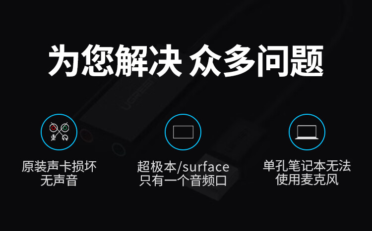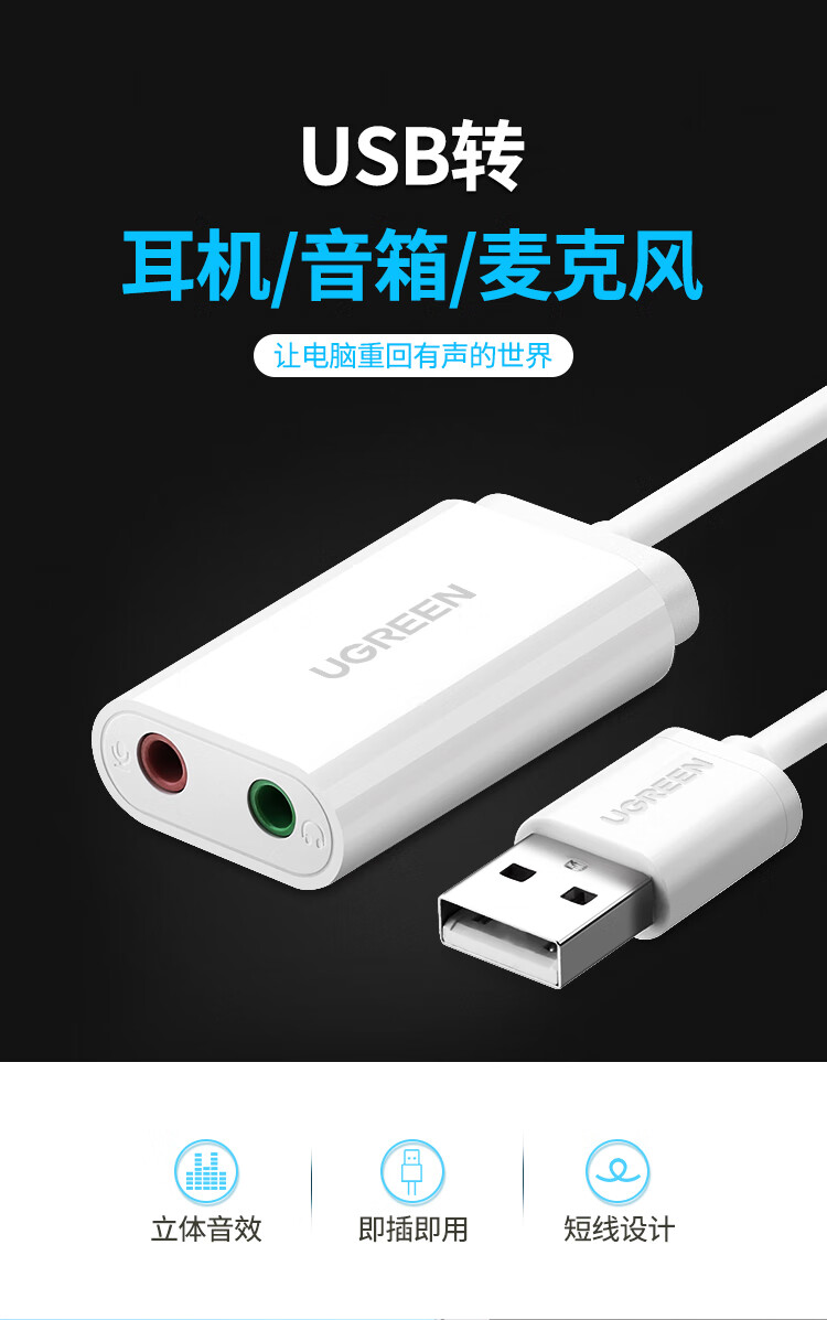 商品标题:绿联(UGREEN)US205 USB外置独立声卡免驱 连接3.5mm音频耳机麦克风音响转换器头 白色30143(个)