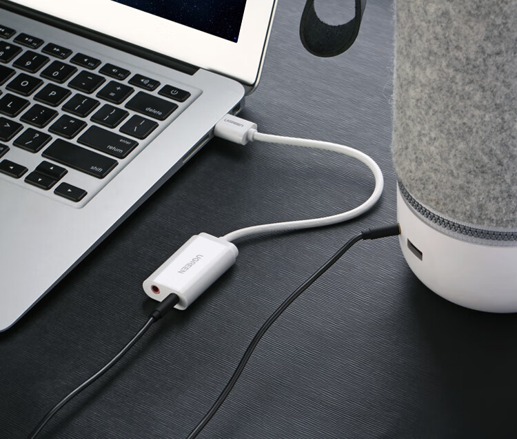 绿联(UGREEN)US205 USB外置独立声卡免驱 连接3.5mm音频耳机麦克风音响转换器头 白色30143(个)移动竞价专用TG25102008518