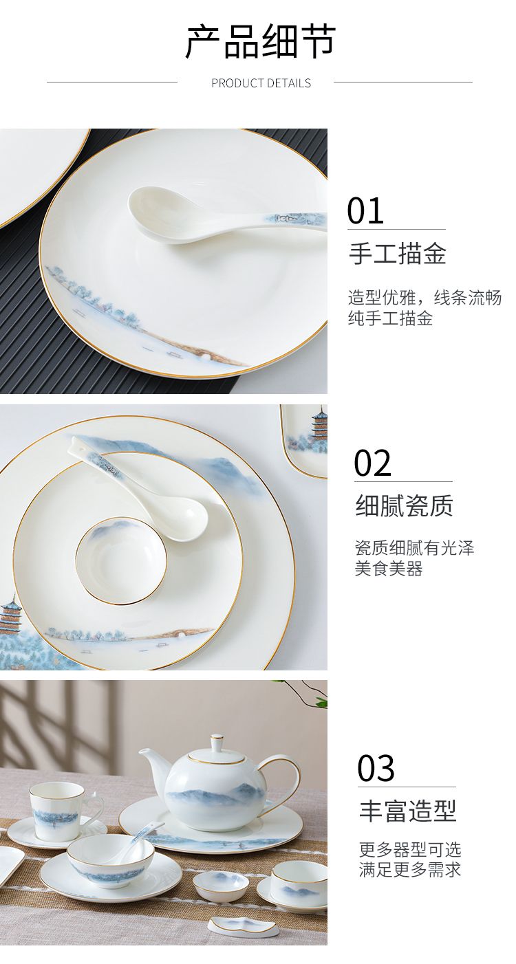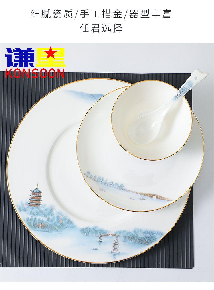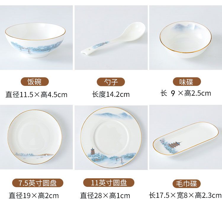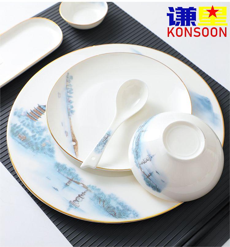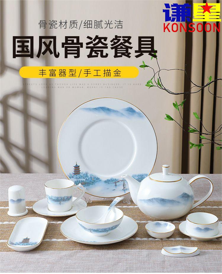 商品标题:谦星 Z-23605623 陶瓷餐具碗勺盘碟杯套装 九件套陶瓷中国风 1套(套)