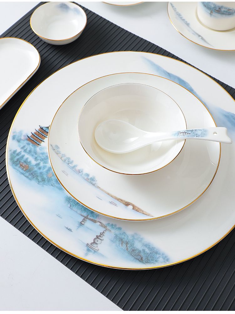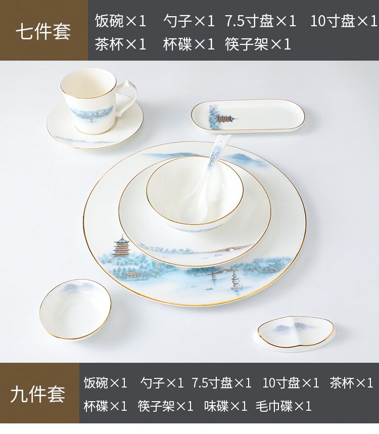 谦星 Z-23605623 陶瓷餐具碗勺盘碟杯套装 九件套陶瓷中国风 1套(套)