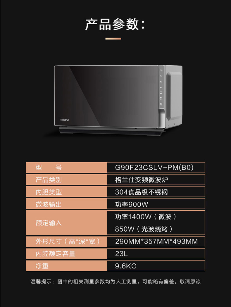 商品标题:格兰仕 G90F23CSLV-PM(B0) 23升光波微波炉烤箱一体机(台)黑