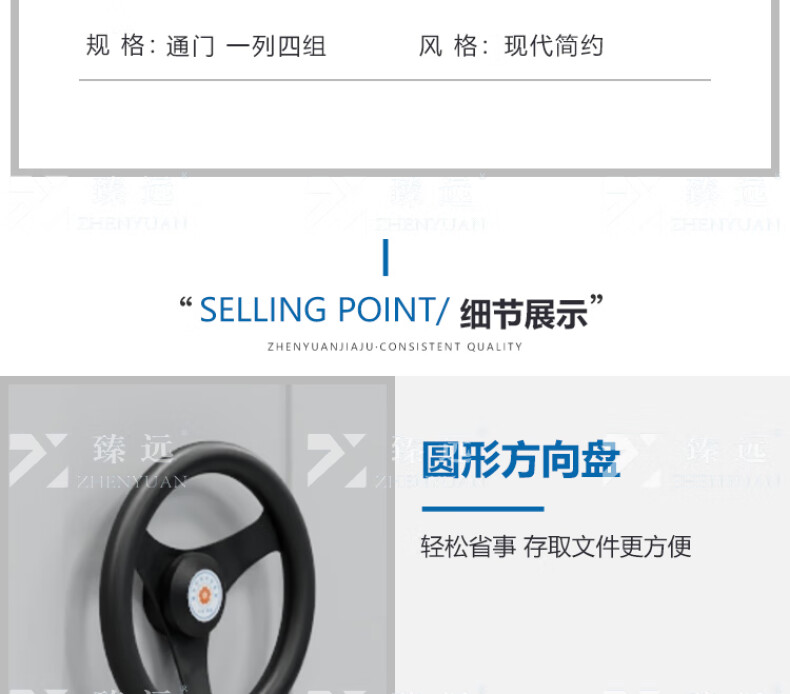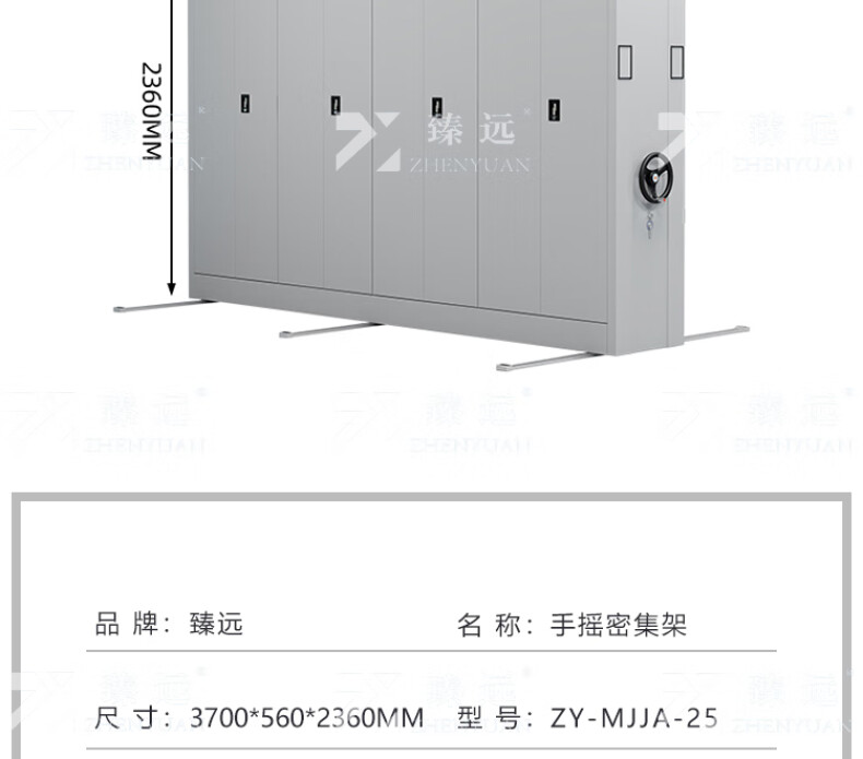商品标题:臻远ZY-MJJA-25 手摇密集架移动档案柜钢制轨道密集柜 通门 一列4组3700*560*2360(组)
