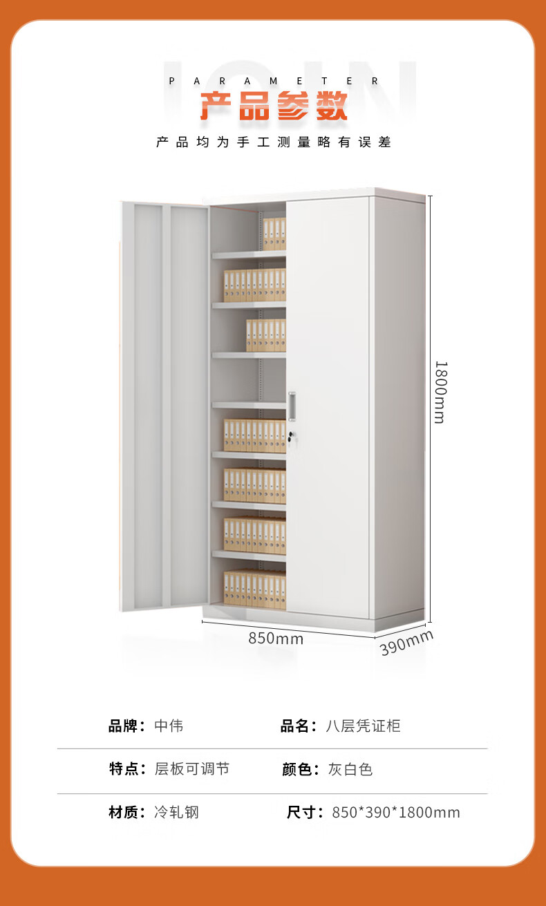 商品标题:中伟3123-ZLG-00001七板凭证柜1800*850*390mm(台)