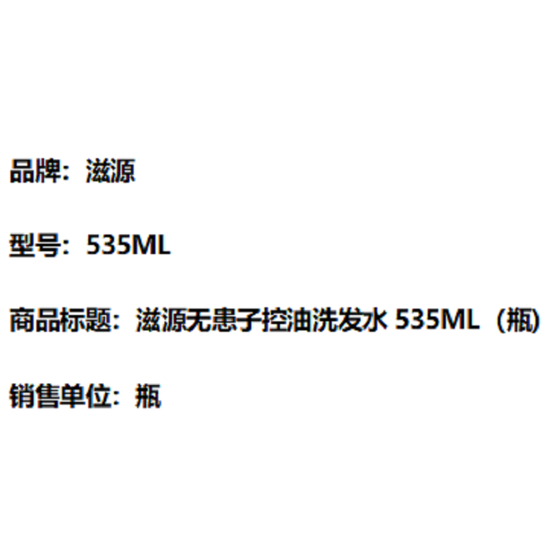 商品标题:滋源无患子控油洗发水535ML(瓶)