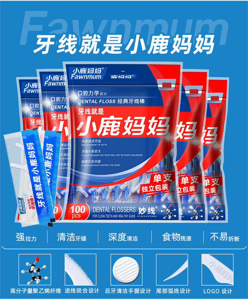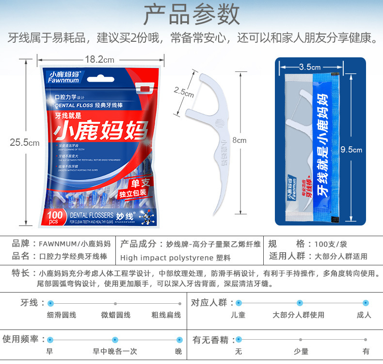 商品标题:小鹿妈妈 洁齿护理牙线棒单支独立包装100支/袋*3共300支 xlmm003 齿护理牙线棒单支独立包装 300支 (单位:袋)