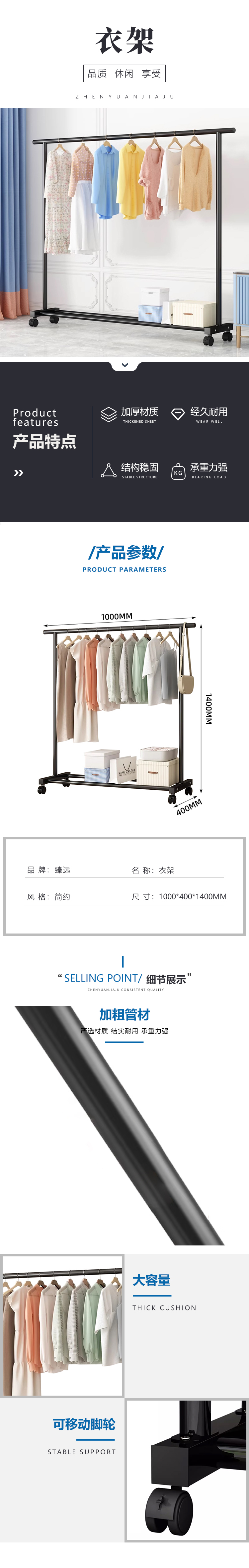 商品标题:臻远 ZY-DL-48 晾衣架落地卧室宿舍移动晒晾衣帽架子1400*1000*400(个)