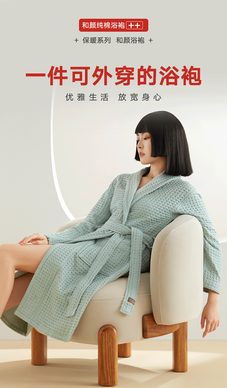 商品标题:HOYO/JP8359A类母婴级新疆长绒棉日式情侣款浴袍(女)礼盒装A-樱若S码