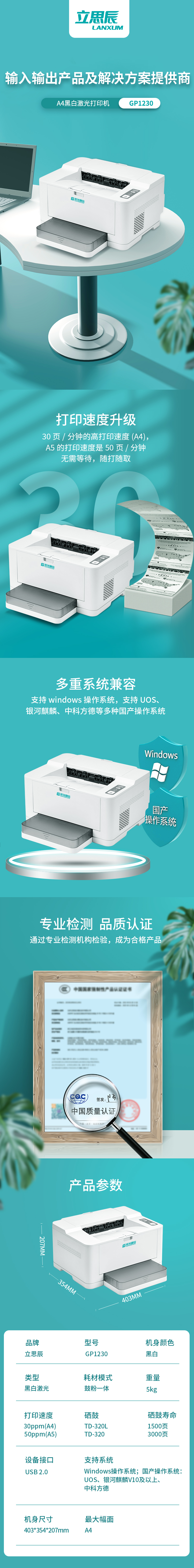 立思辰(LANXUM) GP1230dn A4黑白激光打印机 (计价单位:台) 黑白色
