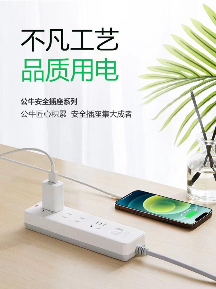公牛GN-211总控4位插排白色3米(单位:个)(新国标)