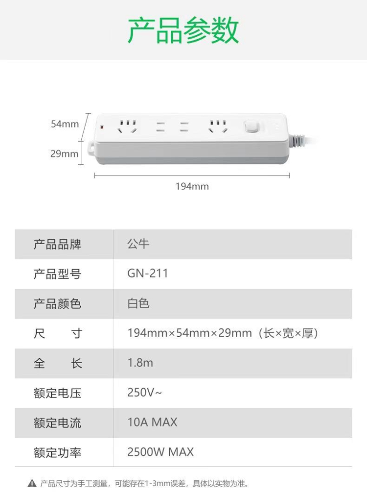 商品标题:公牛GN-211总控4位插排白色3米(单位:个)(新国标)