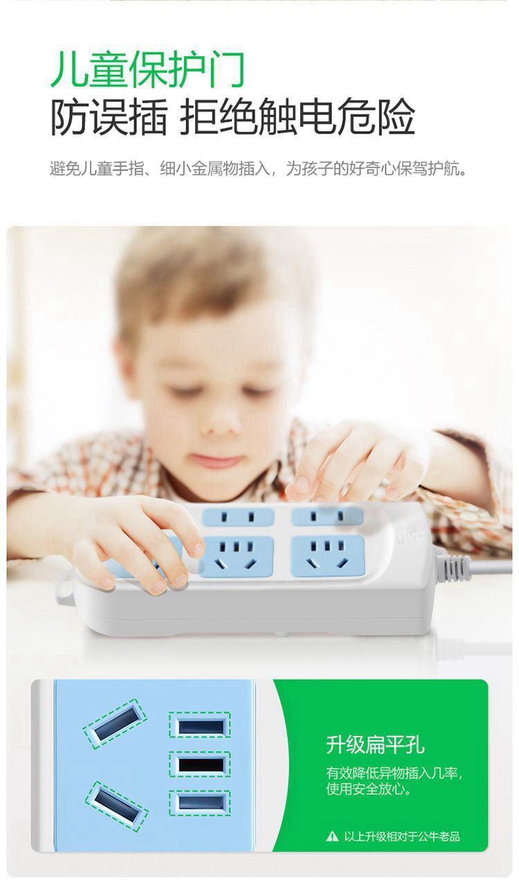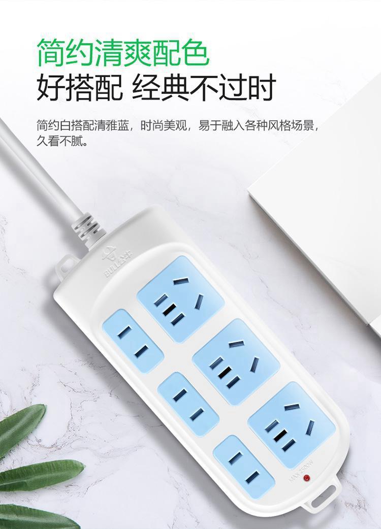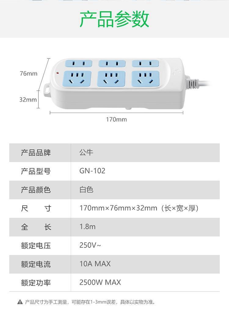 公牛GN-102无开关6位插排1.8米(单位:个)(新国标)