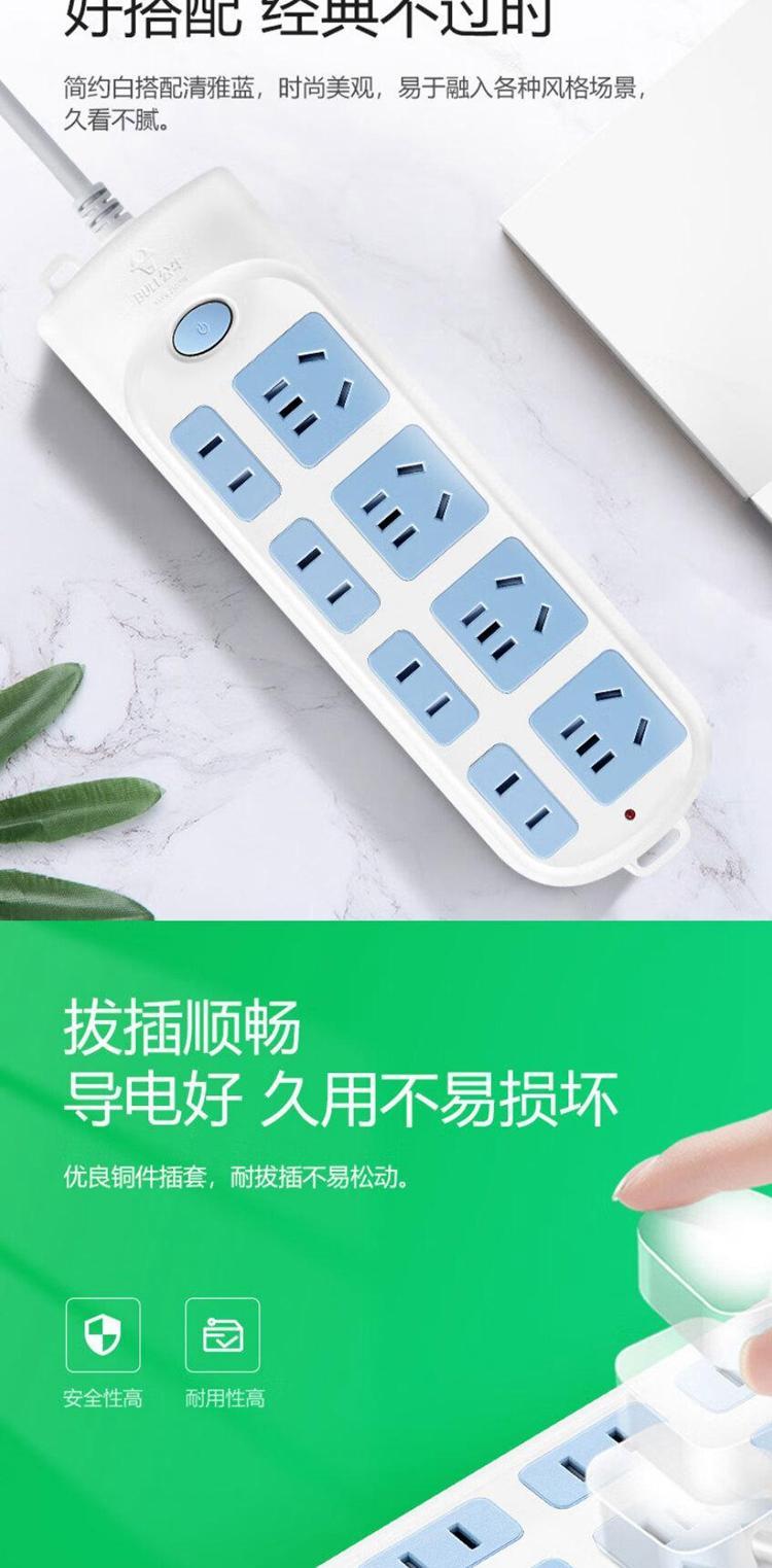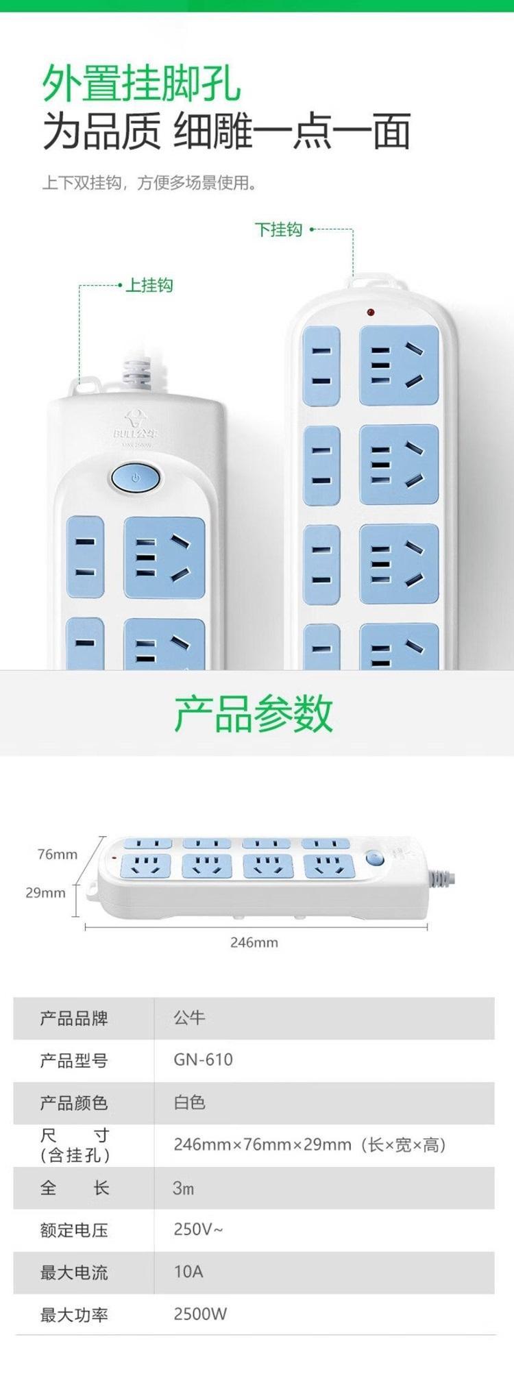 商品标题:公牛GN-610总控8位插排3米(单位:个)(新国标)