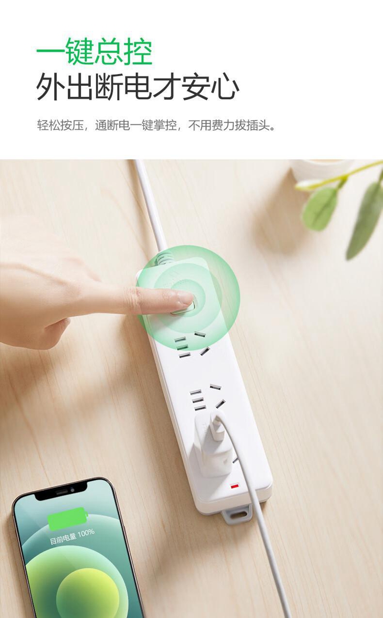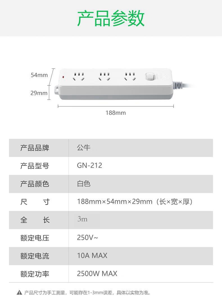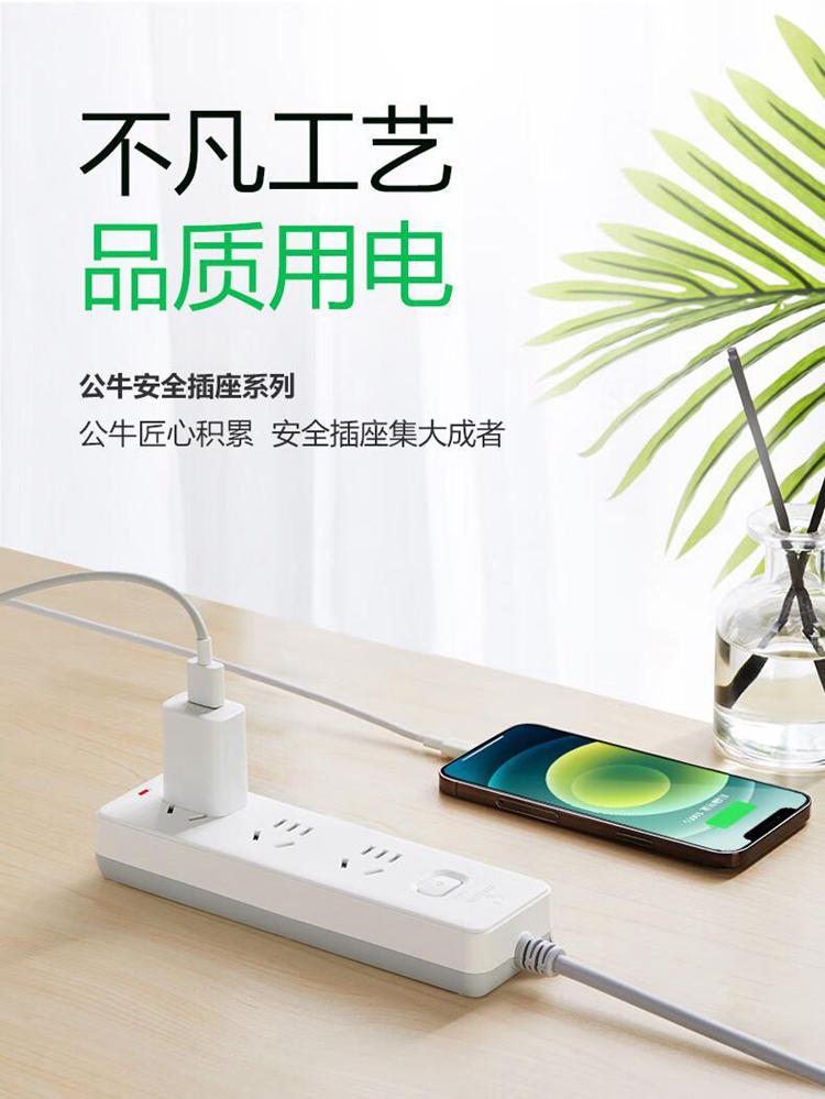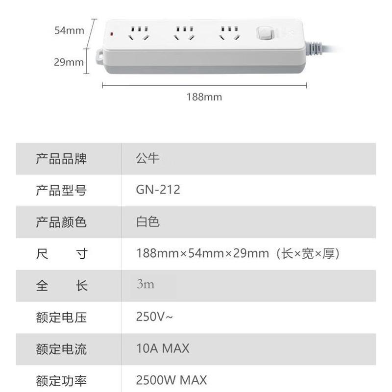 公牛GN-212总控3位插排白色3米(单位:个)(新国标)
