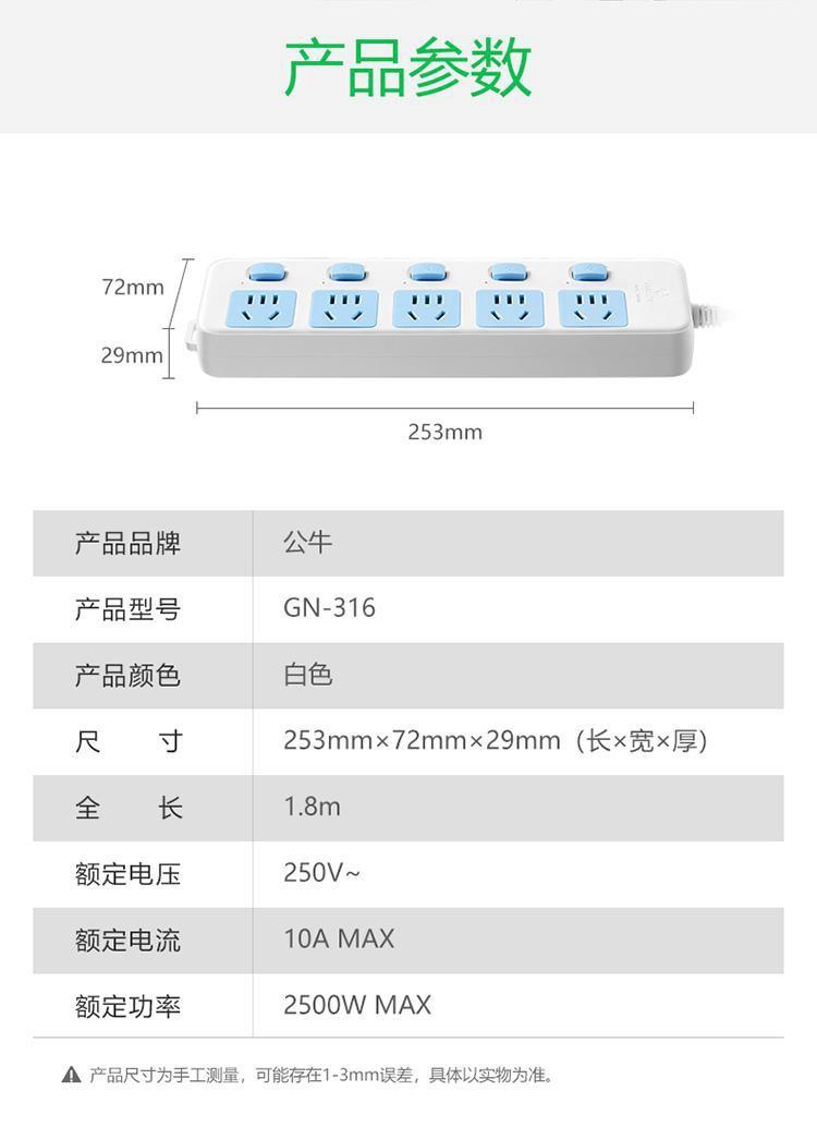 公牛GN-316分控5位插排1.8米(单位:个)(新国标)