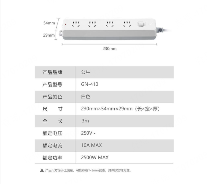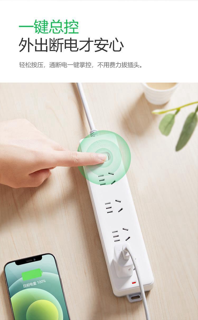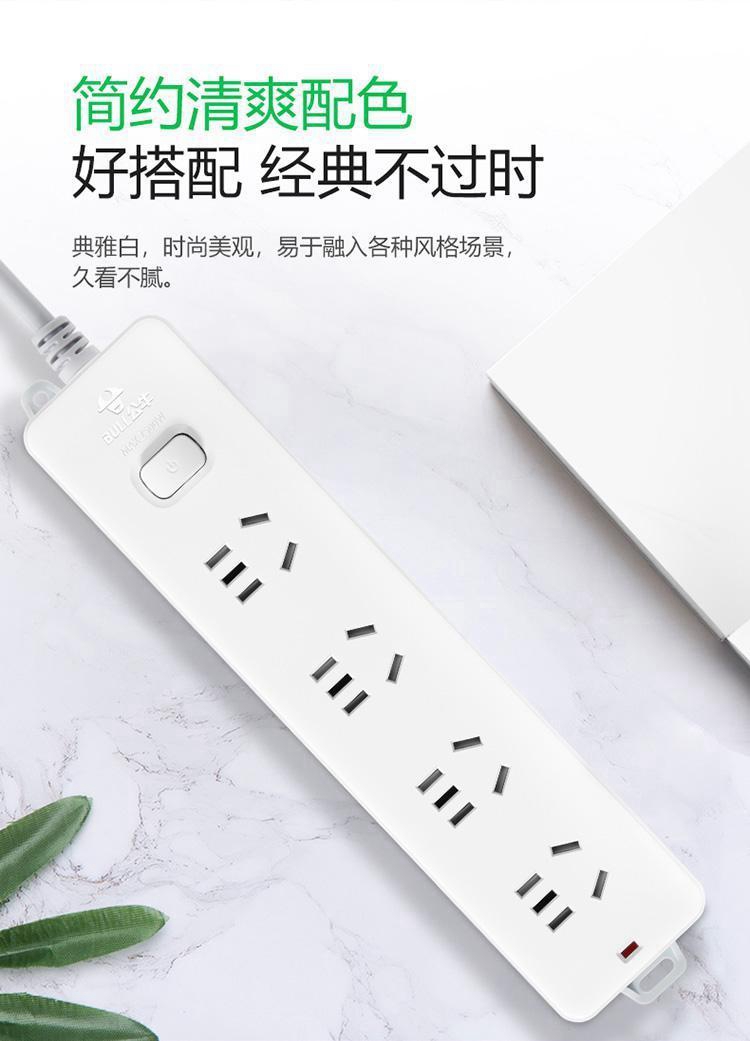 公牛GN-410总控4位插排白色3米(单位:个)(新国标)