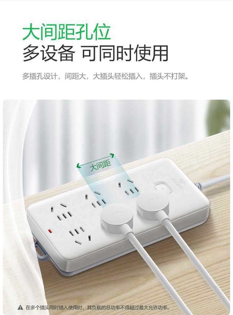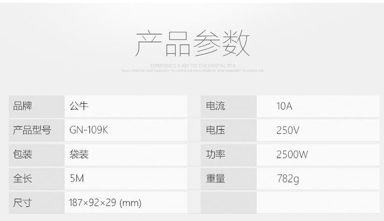 公牛GN-109K总控6位插排白色5米(单位:个)(新国标)