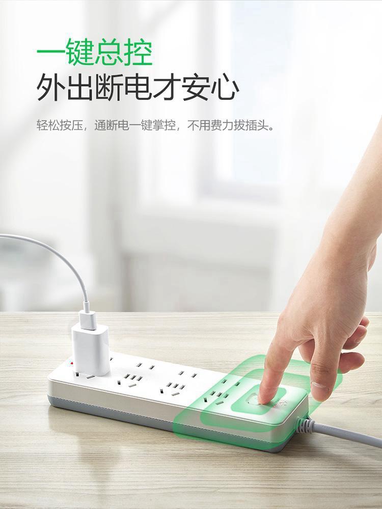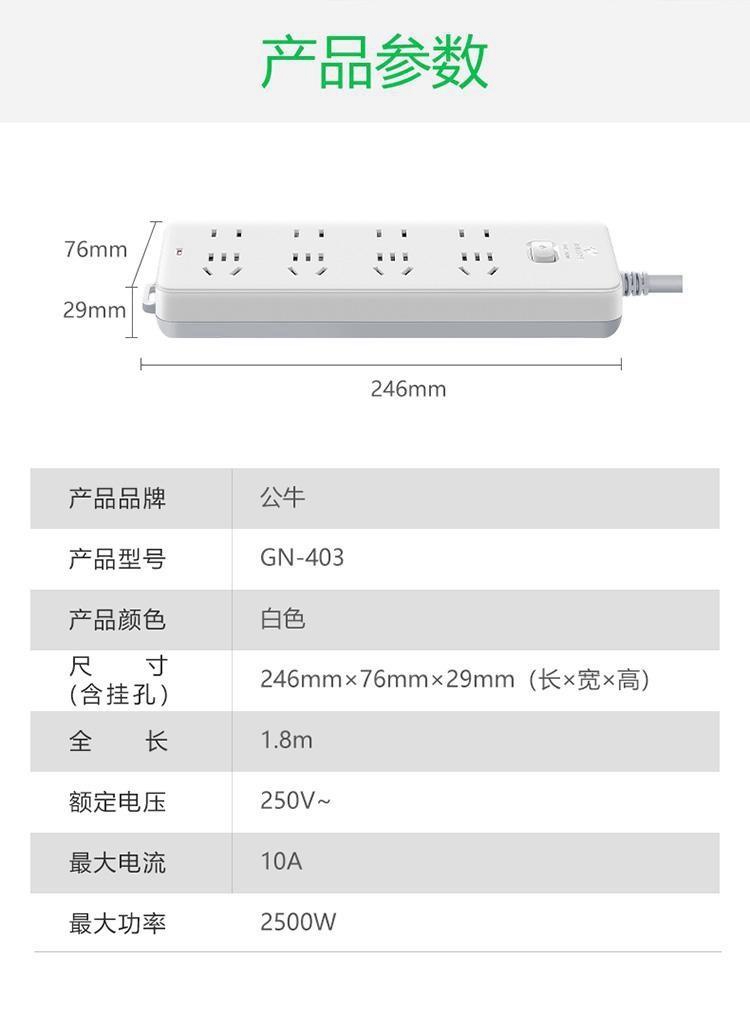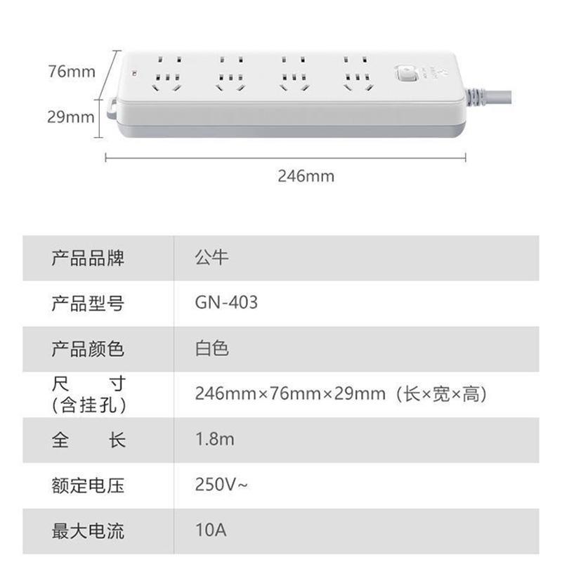 公牛GN-403总控8位插排白色1.8米(单位:个)(新国标)