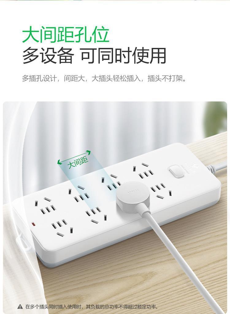 公牛GN-217总控8位插排白色5米(单位:个)(新国标)