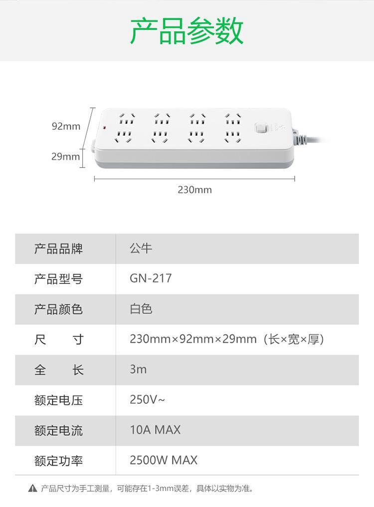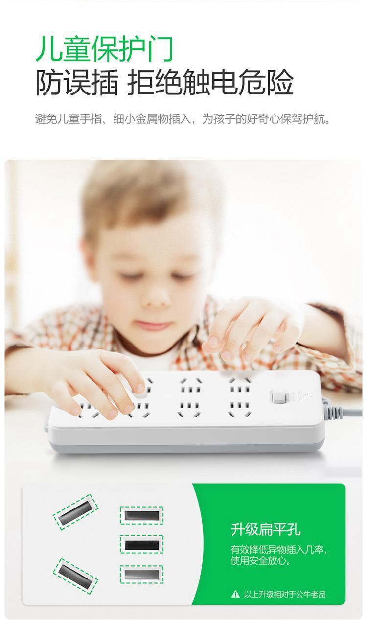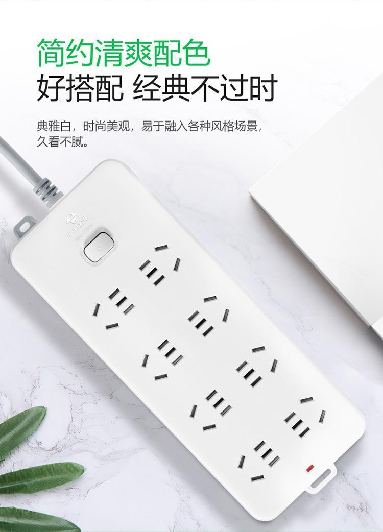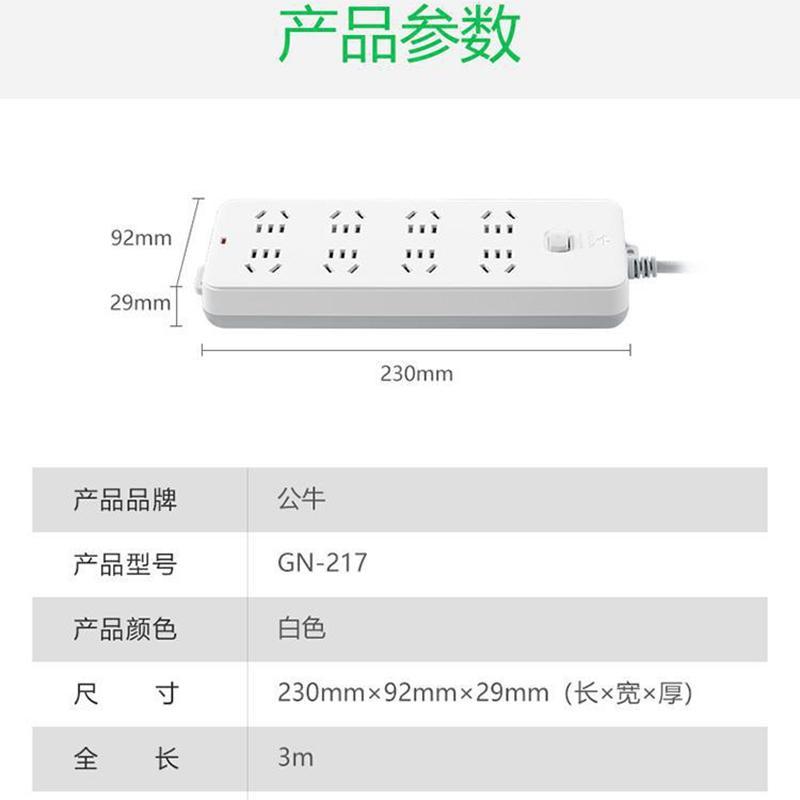 公牛GN-217总控8位插排白色3米(单位:个)(新国标)