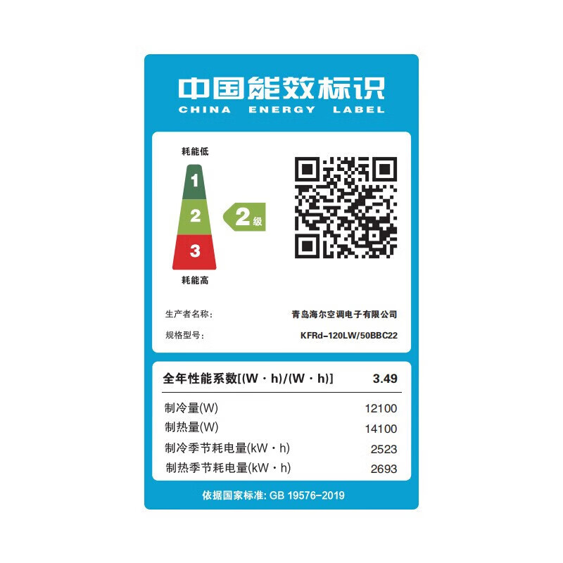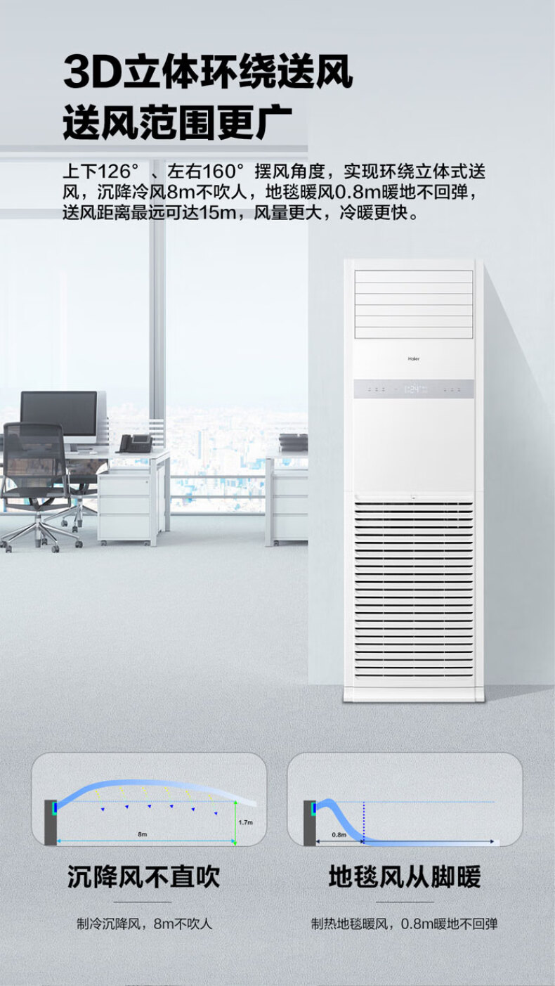 海尔(Haier) KFRd-120LW/8YAF82A 变频冷暖 二级能效 5匹 立柜式空调 (计价单位:台) 白色 标准安装