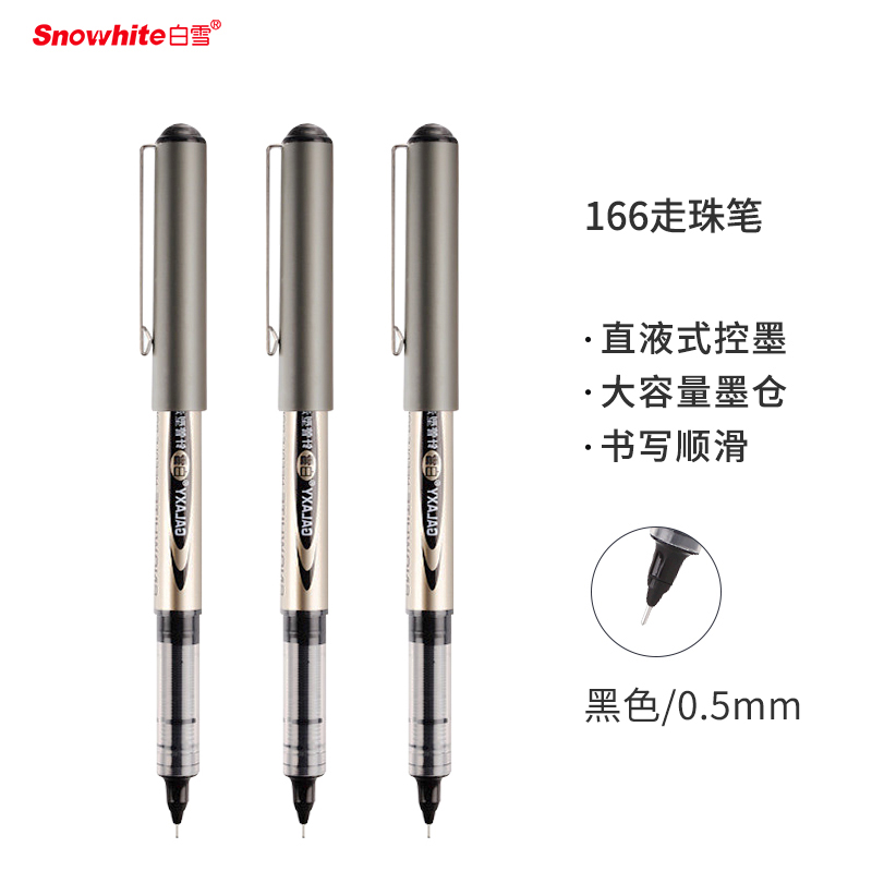 白雪PVN-166全针管直液式走珠笔0.5mm黑色12支/盒(单位:支)