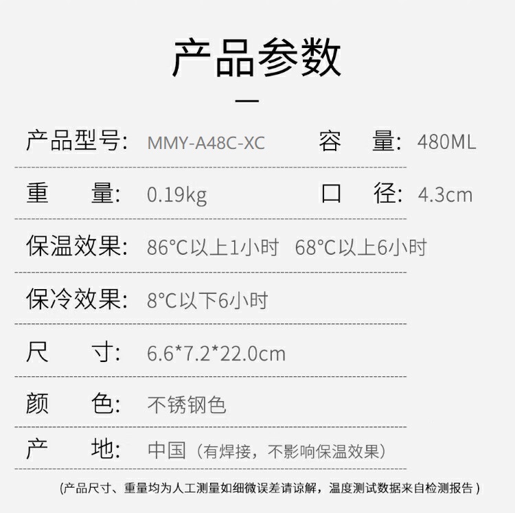 商品标题:虎牌MMY-A48C-XC保温杯不锈钢色480ML(个)
