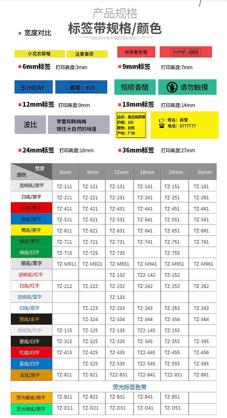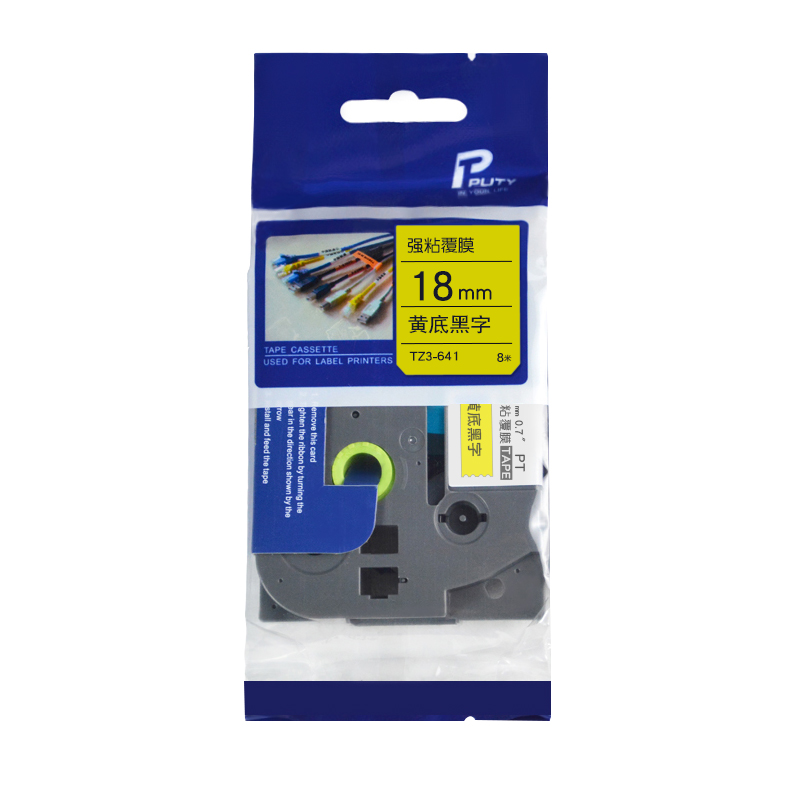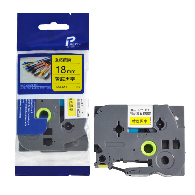 商品标题:普贴(PUTY) TZ3-641 18mm 适用于兄弟PT系列 色带 黄底黑字