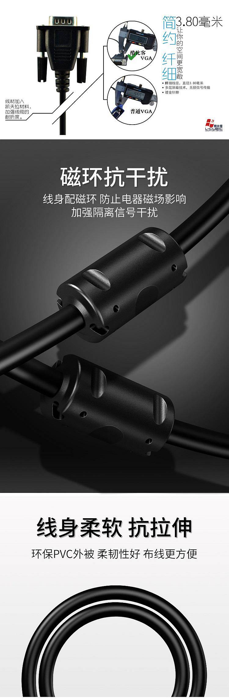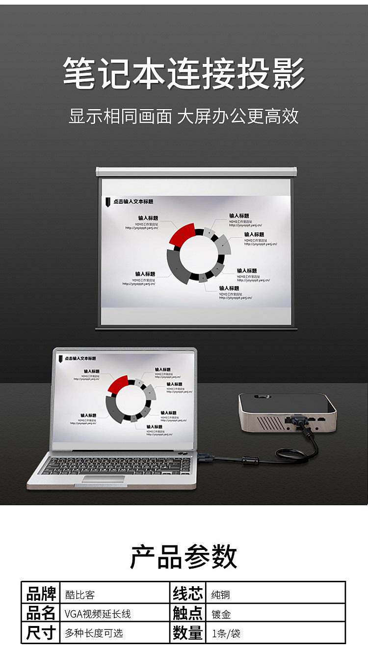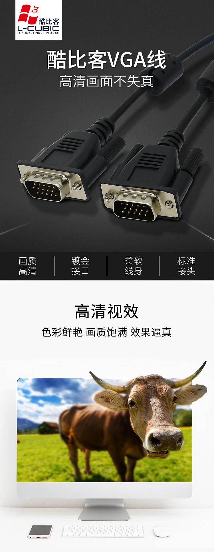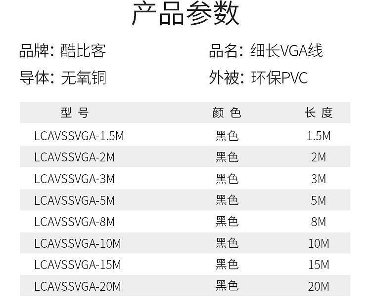 商品标题:酷比客LCAVSSVGA-2M/VGA线电脑投影机电视连接线2M(根)