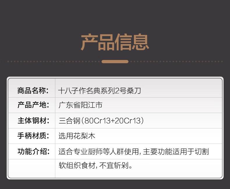 商品标题:十八子作 2号 F208-2花梨木柄名典桑刀(单位:把)