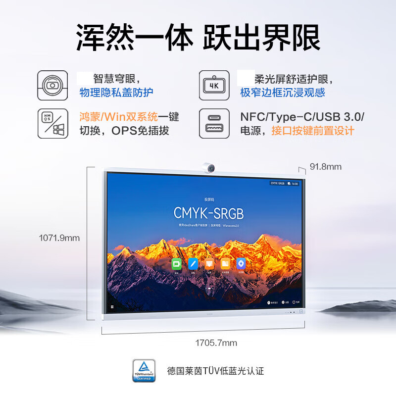 华为IdeaHub S2 Pro 75寸会议平板一体机(含落地支架+传屏器+遥控器)(套)