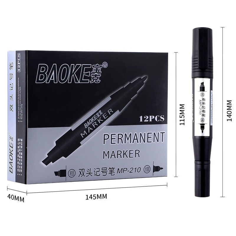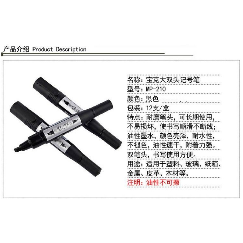 商品标题:宝克(BAOKE) MP-210 记号笔大双头 12支/盒 (单位:支) 黑色