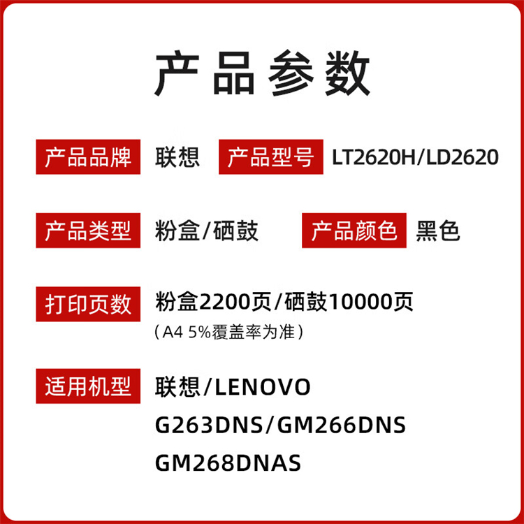 商品标题:联想LT2620H原装墨粉(适用于G263DNS/GM266DNS/GM268DNAS)(单位:支)
