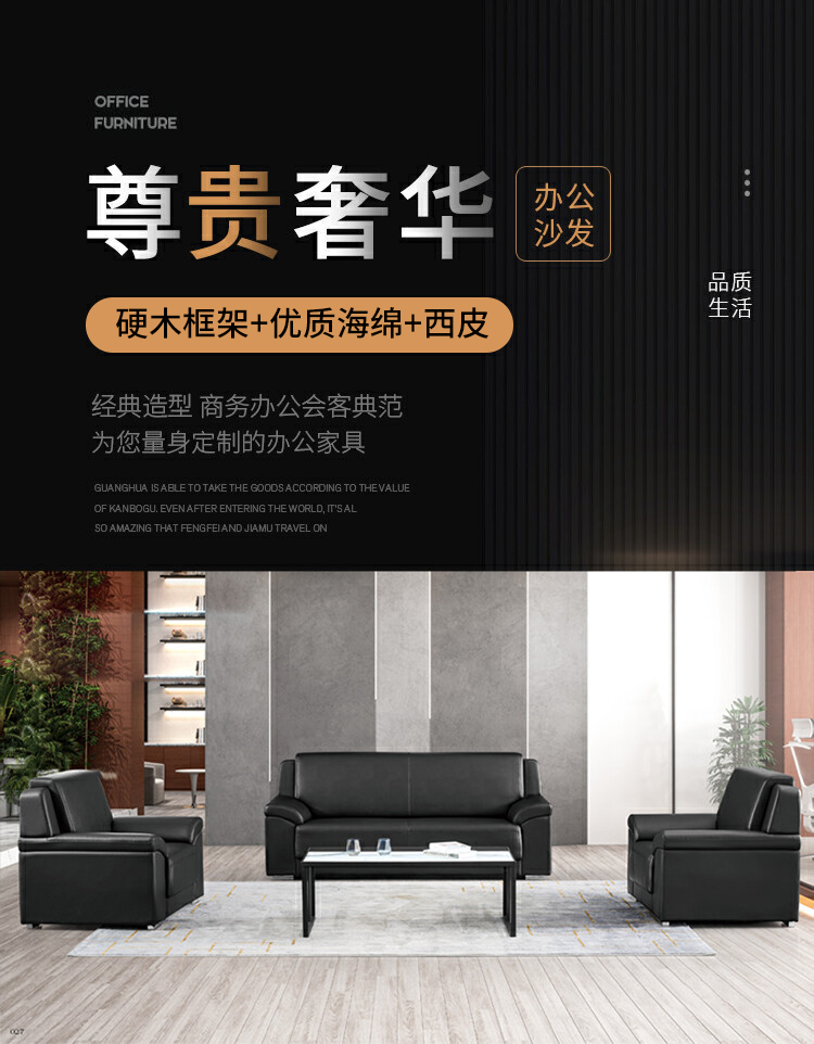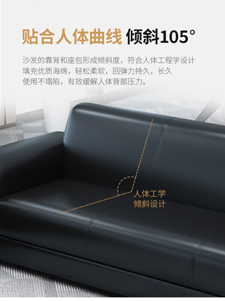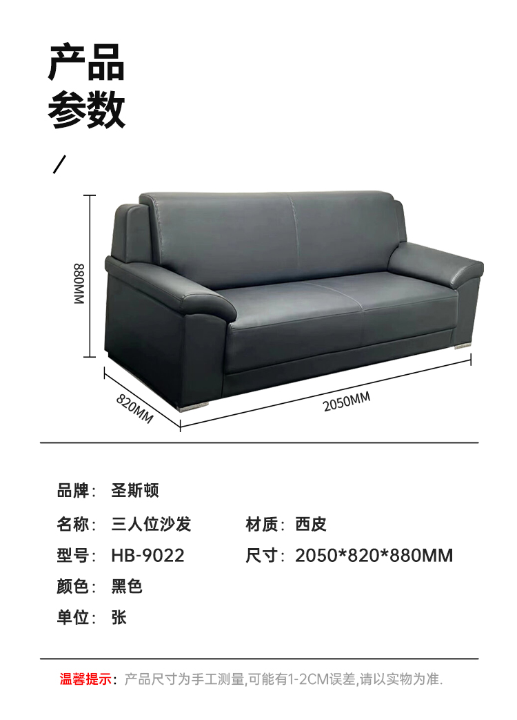 圣斯顿 HB-9022 2050*820*880mm 三人位沙发西皮 张 黑色