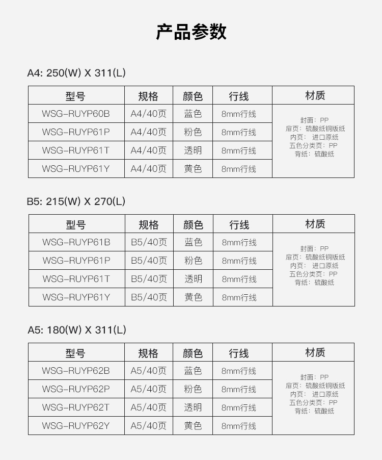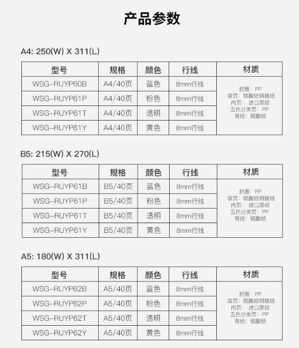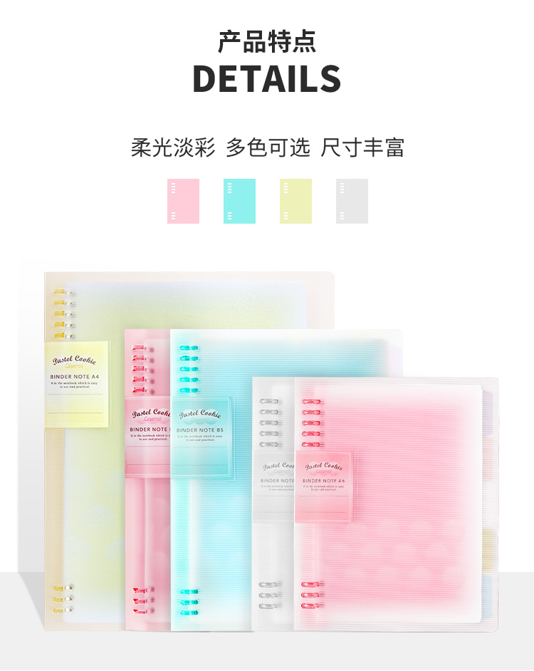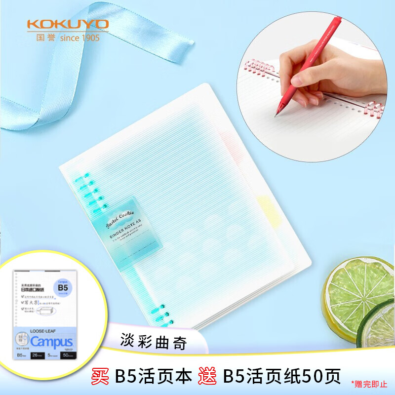商品标题:国誉WSG-RUYP61B淡彩曲奇柔光紧凑型活页本蓝色B5/40页(本)