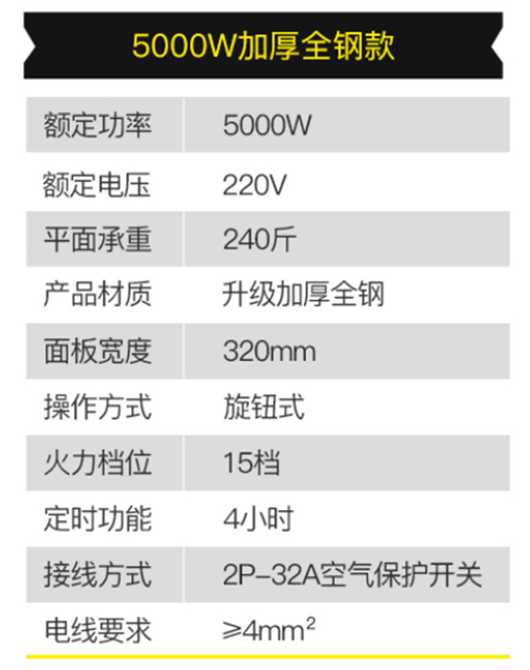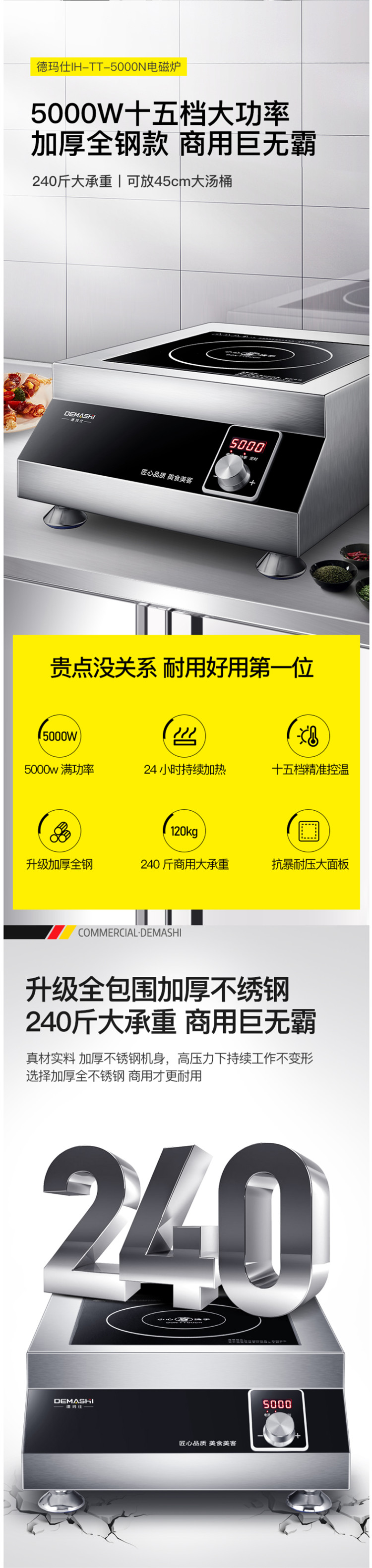 商品标题:德玛仕(DEMASHI)IH-TT-5000N 5KW商用平面电磁炉(台)