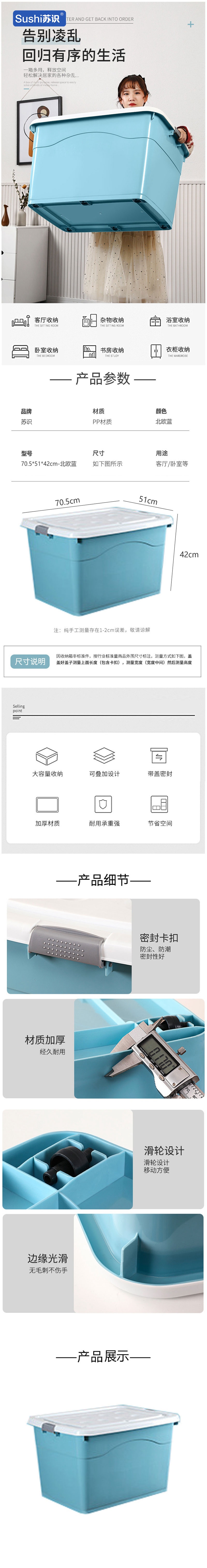 商品标题:苏识 70.5 *51*42cm-北欧蓝 6轮 塑料收纳箱 (计价单位:个) 北欧蓝