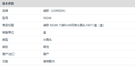 商品标题:绿联 50248 六类RJ45网络水晶头100个/盒(盒)