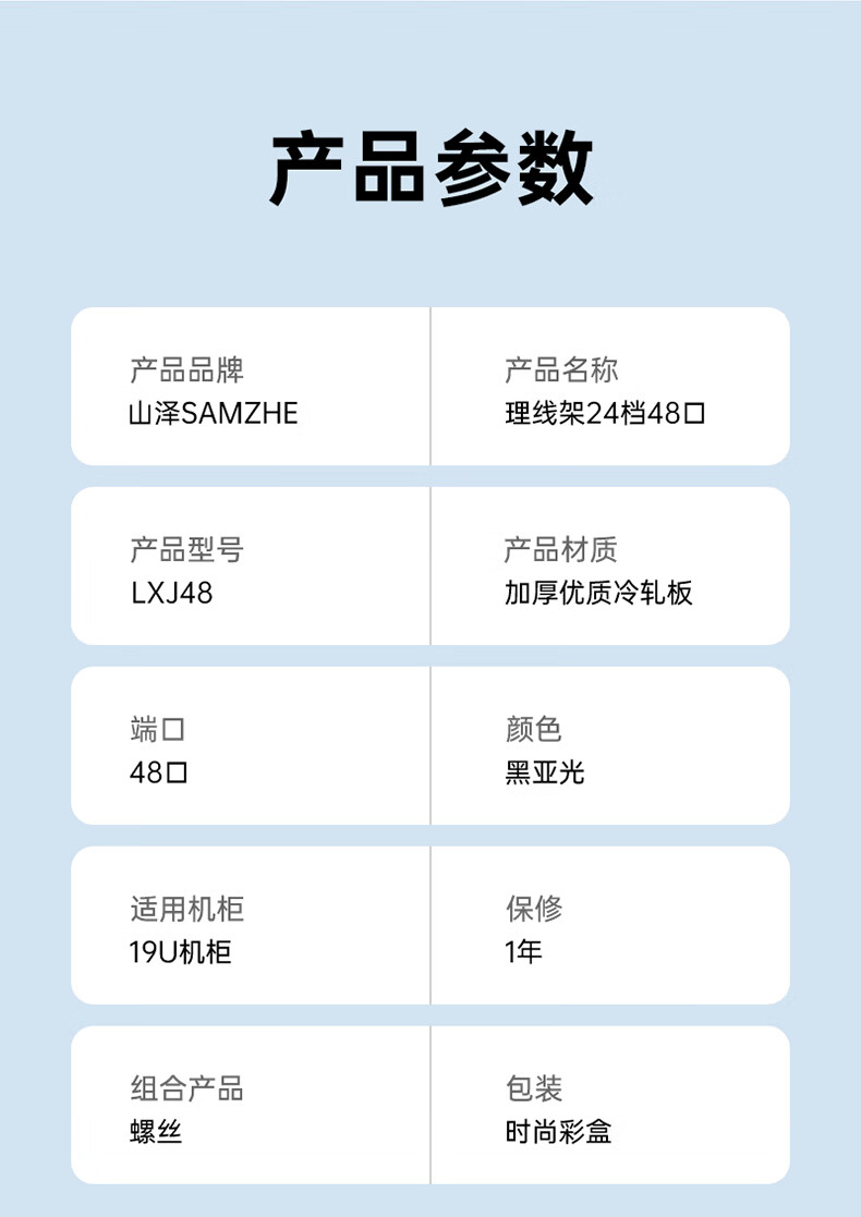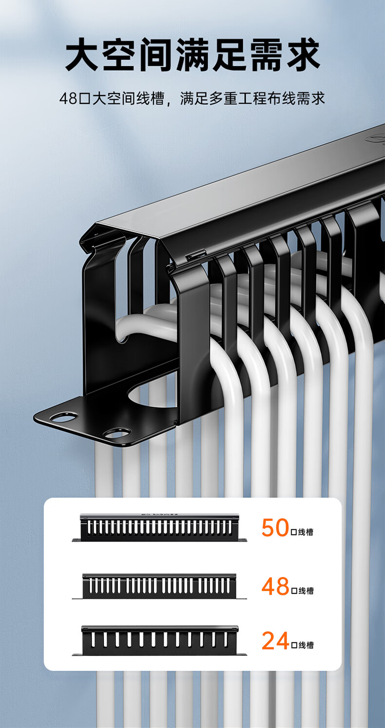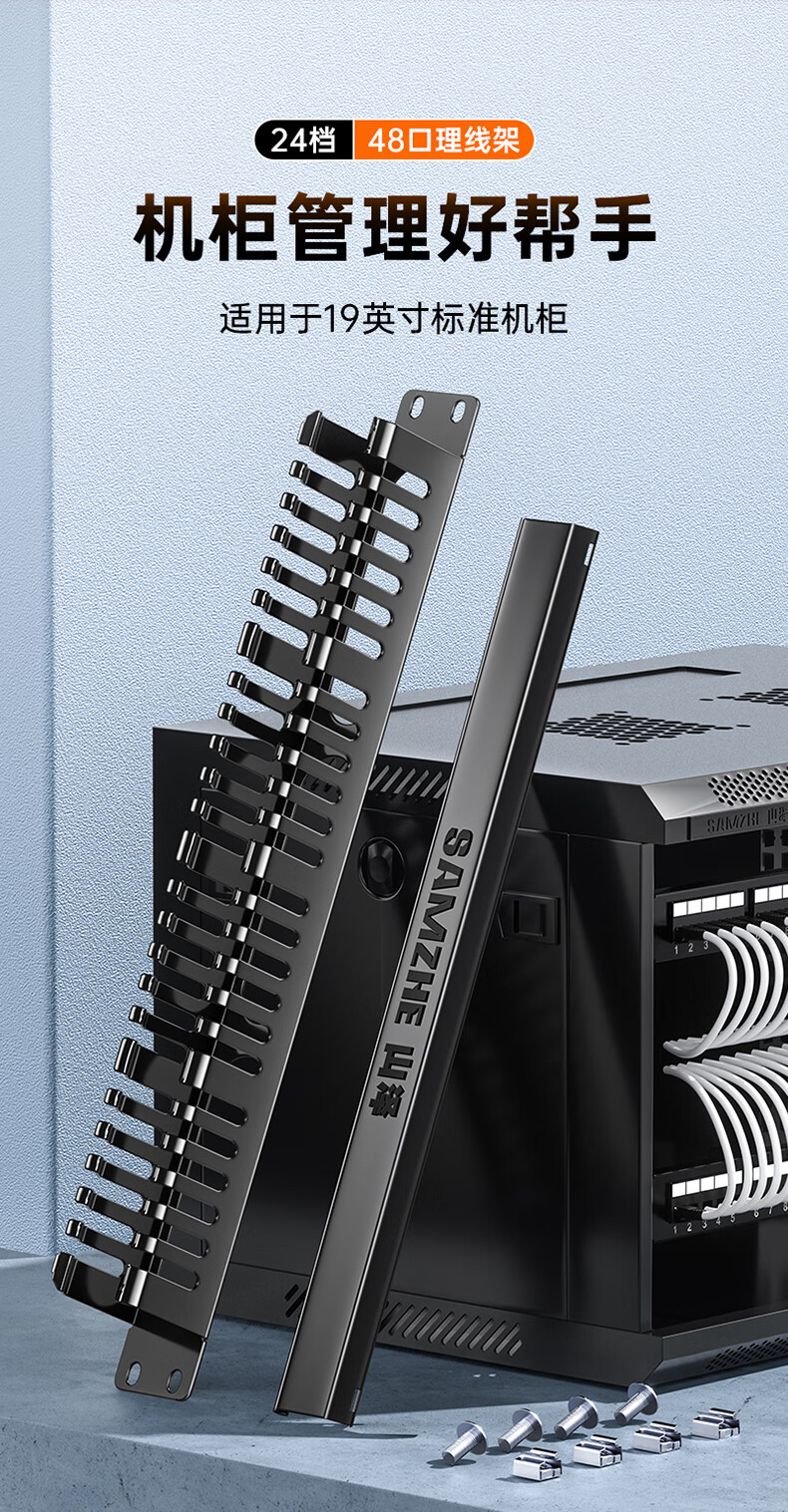 山泽(SAMZHE)理线架24档48口 机柜网线跳线理线架线缆管理器19寸工程级加厚型 LXJ48