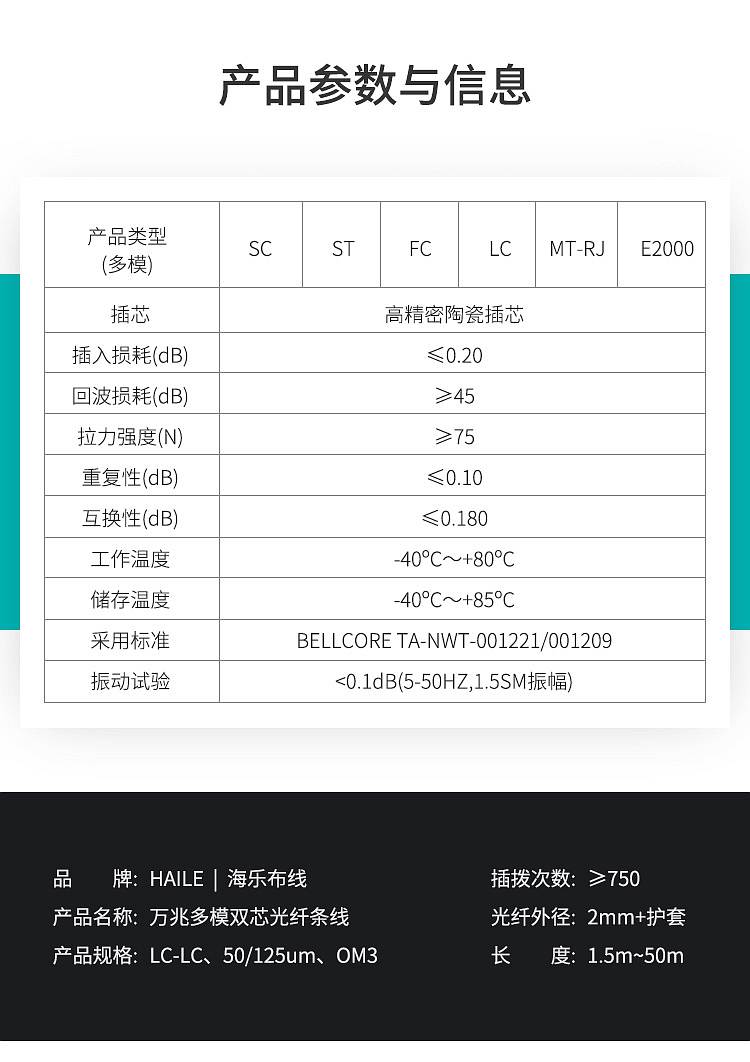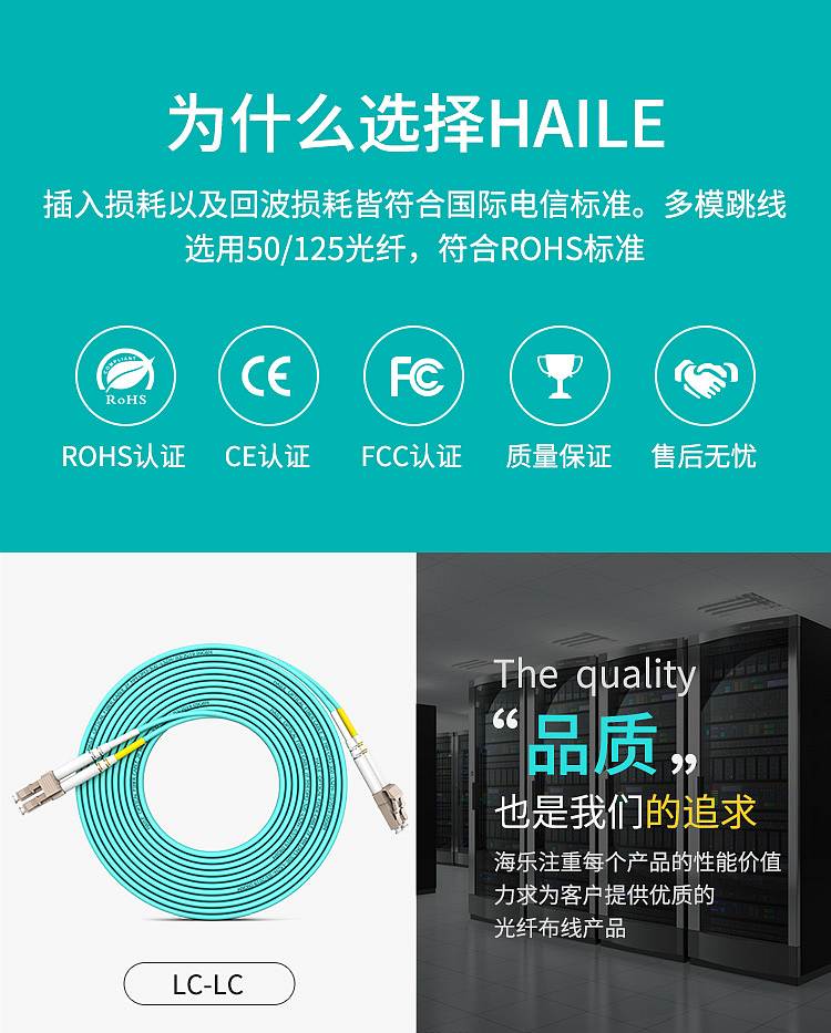 商品标题:海乐LC-LC光纤跳线双芯万兆多模10米(条)