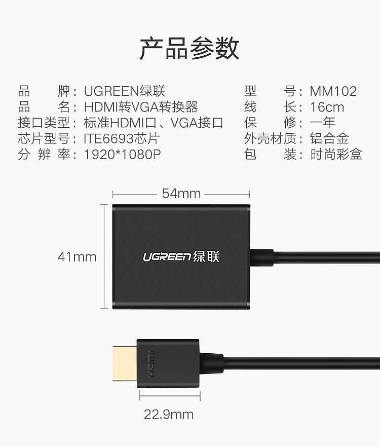 商品标题:绿联40233/HDMI转VGA转接器(个)