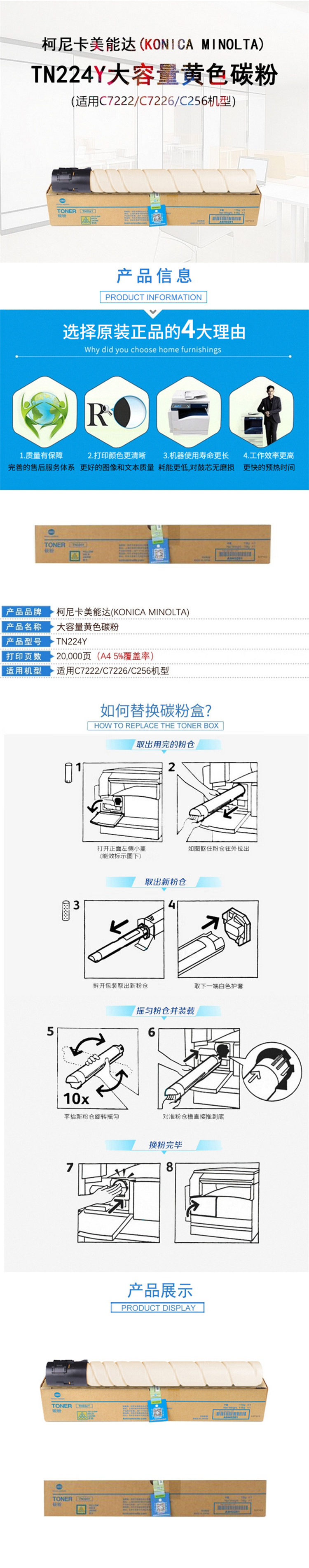 商品标题:柯尼卡美能达(KONICA MINOLTA)TN224Y 原装黄色高容墨粉(单位:支)20000页