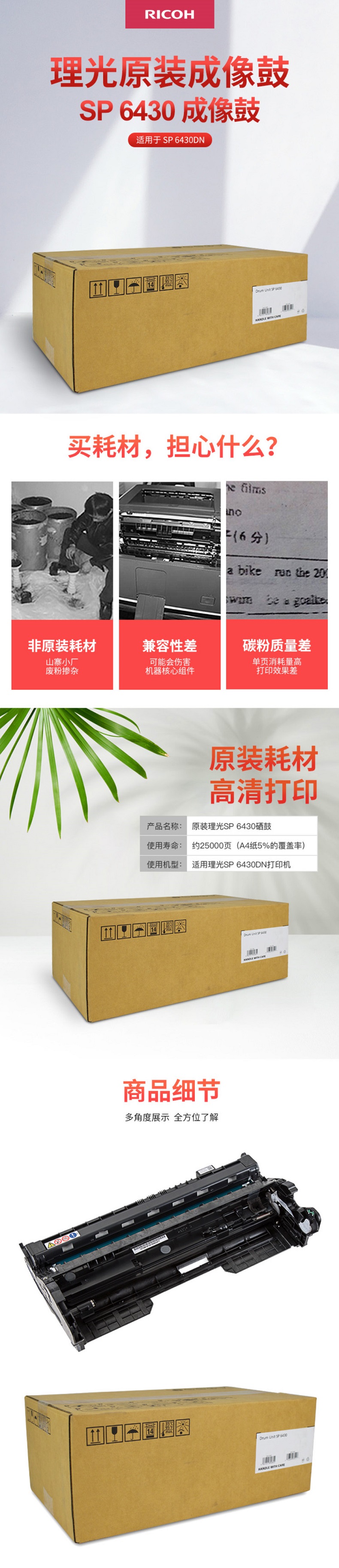 理光(Ricoh)SP 6430型原装黑色硒鼓(适用SP 6430DN打印机)印量25000页 (只)