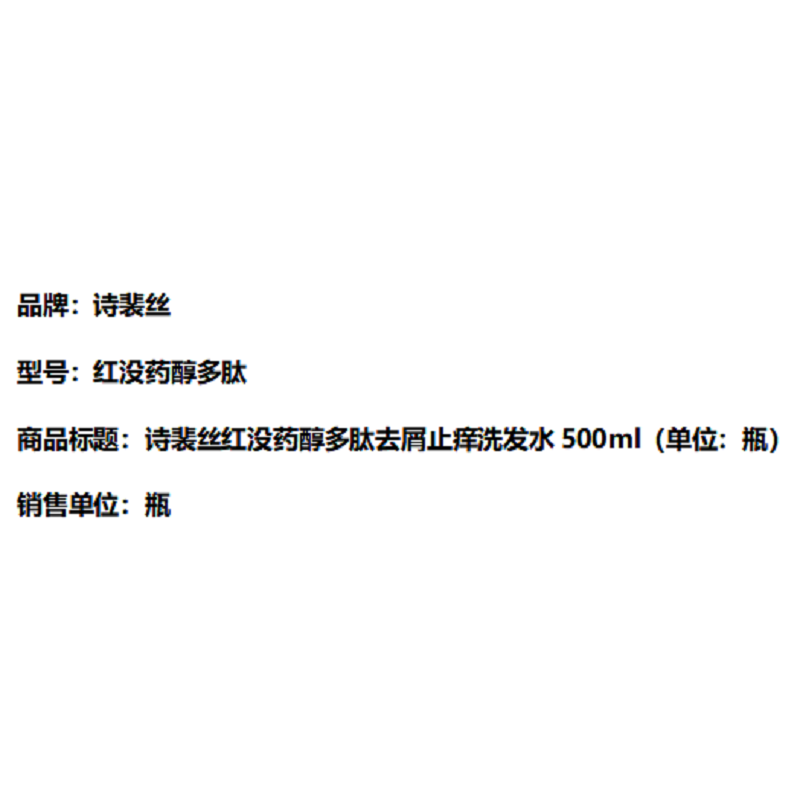 商品标题:诗裴丝红没药醇多肽去屑止痒洗发水500ml(单位:瓶)