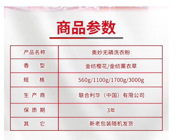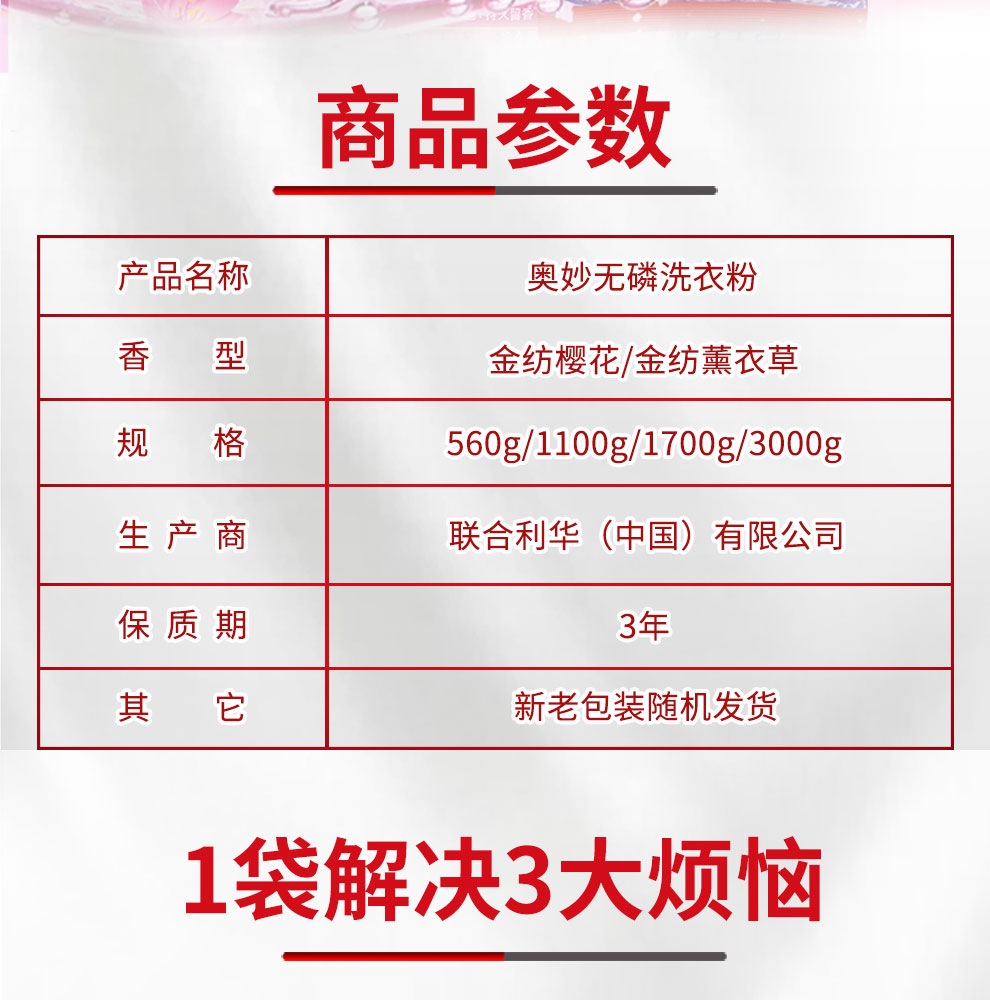 商品标题:奥妙全自动含金纺馨香精华怡神薰衣草无磷洗衣粉3kg(单位:袋)