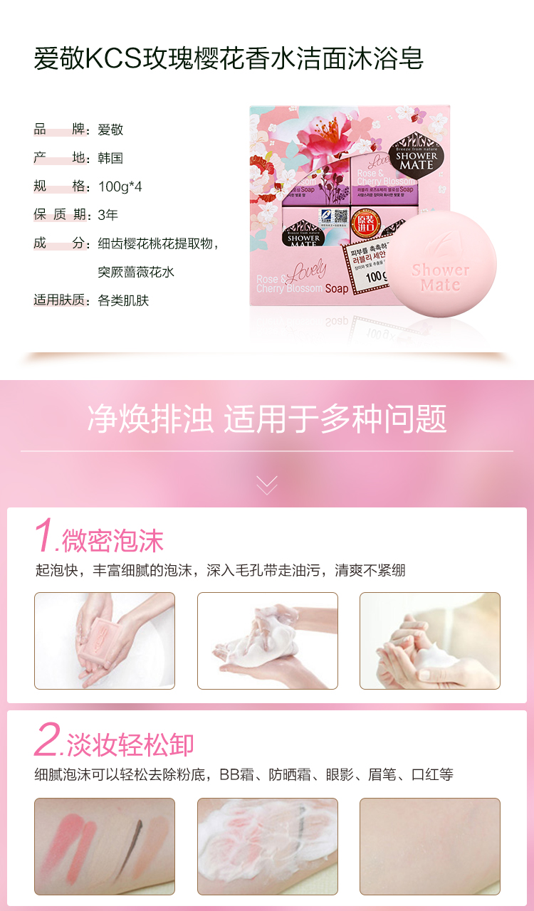 商品标题:爱敬玫瑰樱花香皂100g/块4块/组(组)