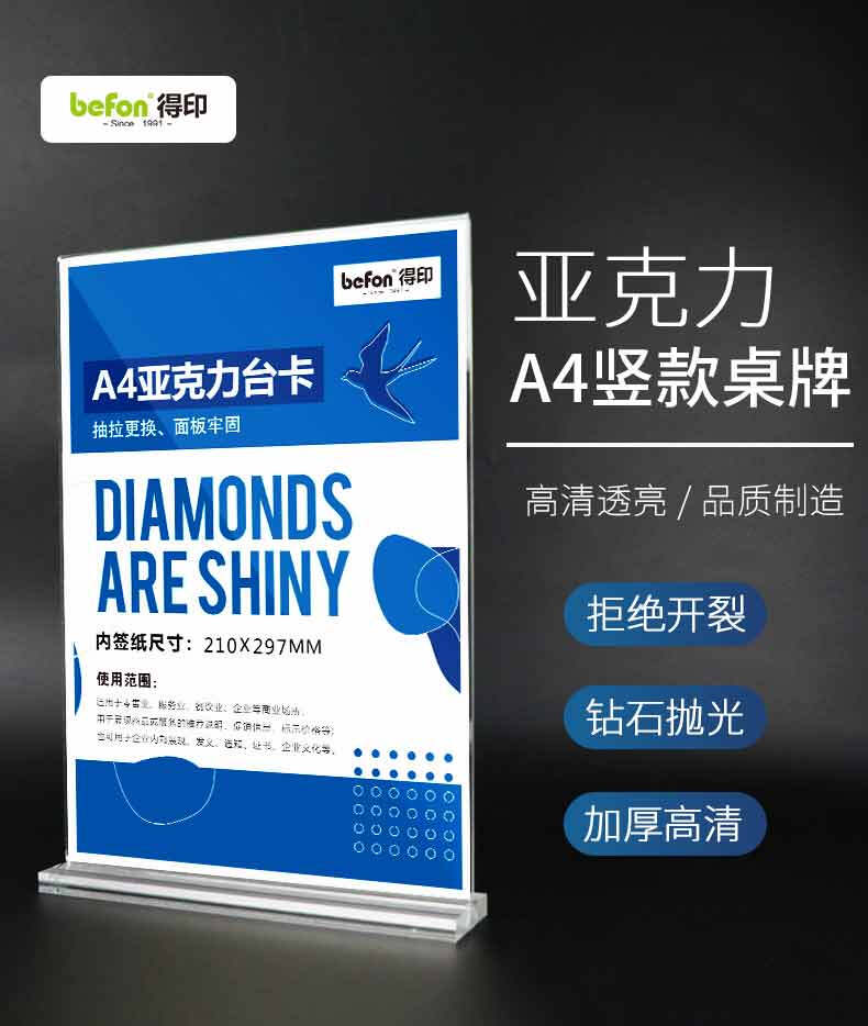 得印(befon) 亚克力A4台卡台签 桌牌立牌 0768(单位:个)