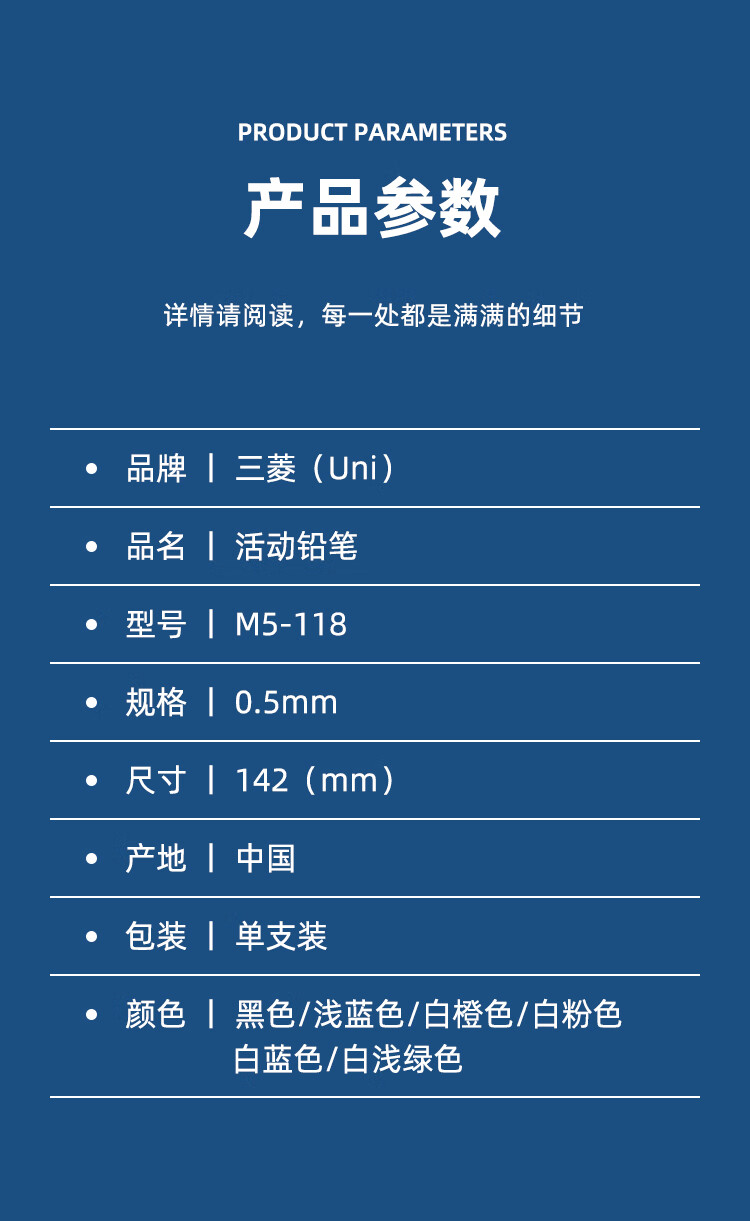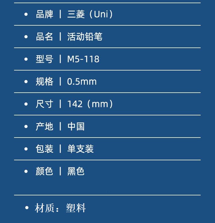 商品标题:三菱M5-118按动活动铅笔0.5mm(支)黑色