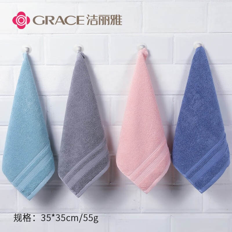 商品标题:洁丽雅7494新疆棉毛巾纯棉绣花素雅方巾35×35cm55g 4条组(单位:组)