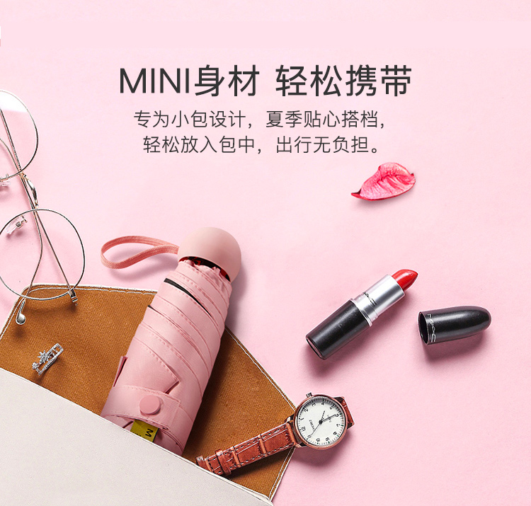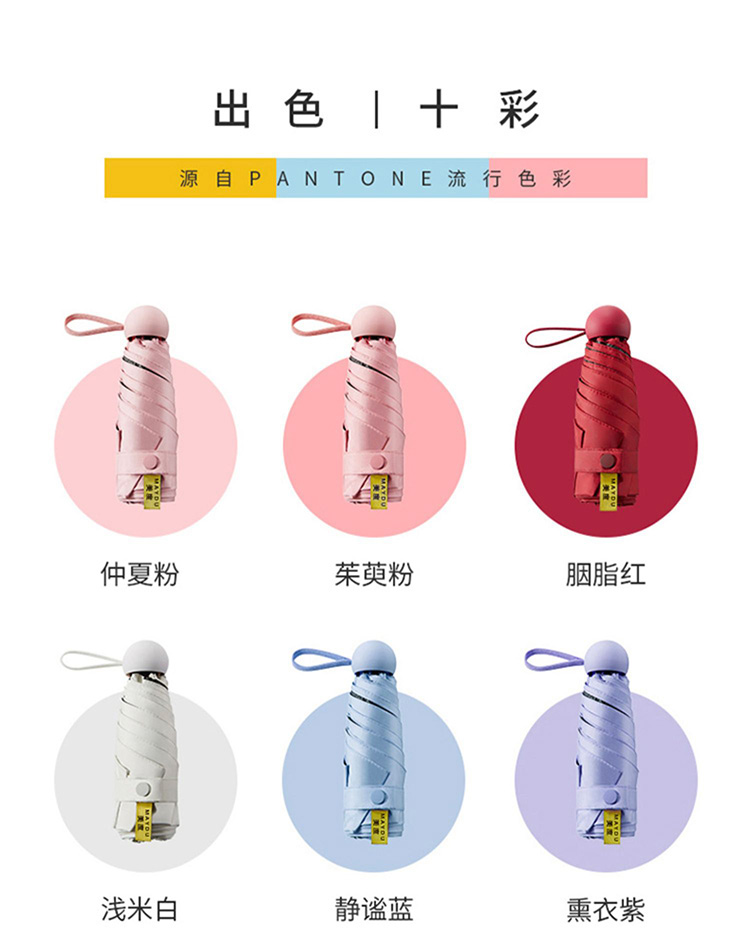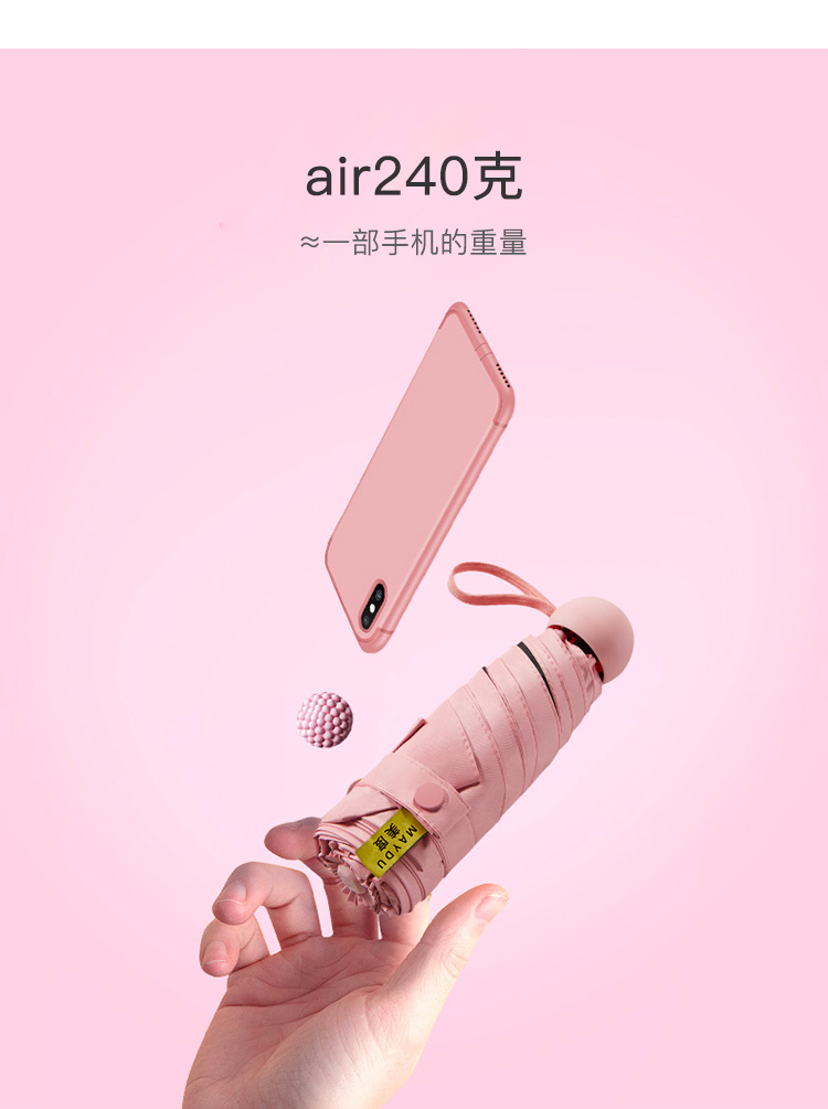 美度M5506五折遮阳胶囊伞50cm*6k/90cm浅米白(把)