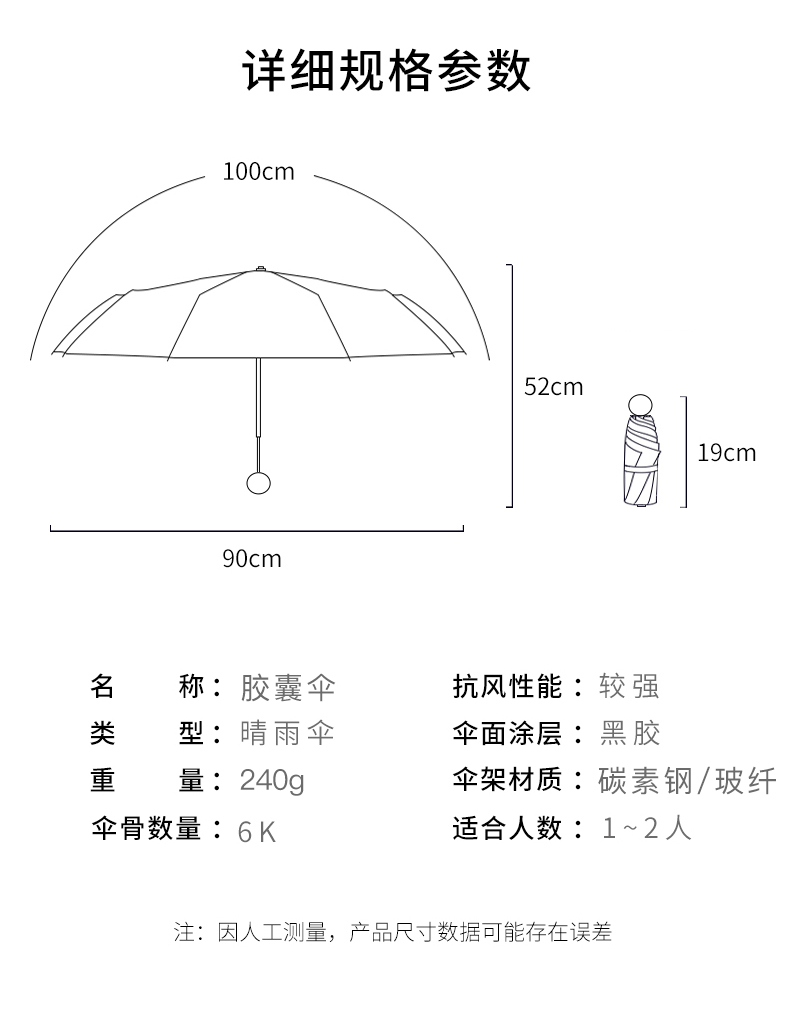 商品标题:美度M5506五折遮阳胶囊伞50cm*6k/90cm浅米白(把)
